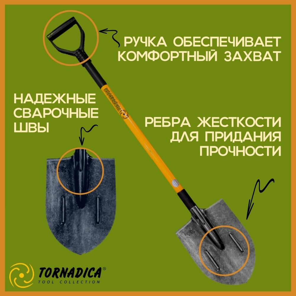 Лопата штыковая с черенком Торнадика Профи с закругленным совком / Лопата штыковая с черенком и ручкой Tornadica PROFI с округлым ковшом