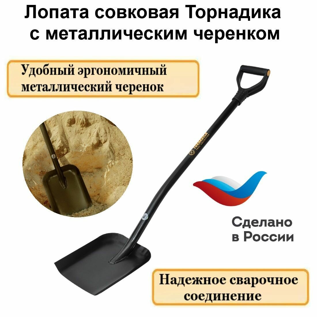 Лопата совковая с черенком Торнадика / Совковая лопата из рельсовой стали с ручкой Totnadica