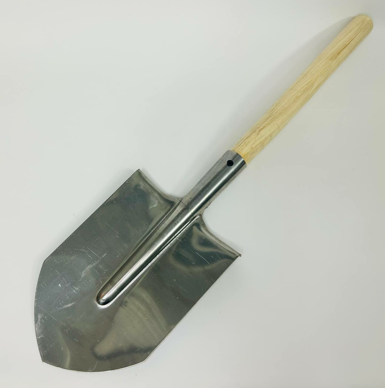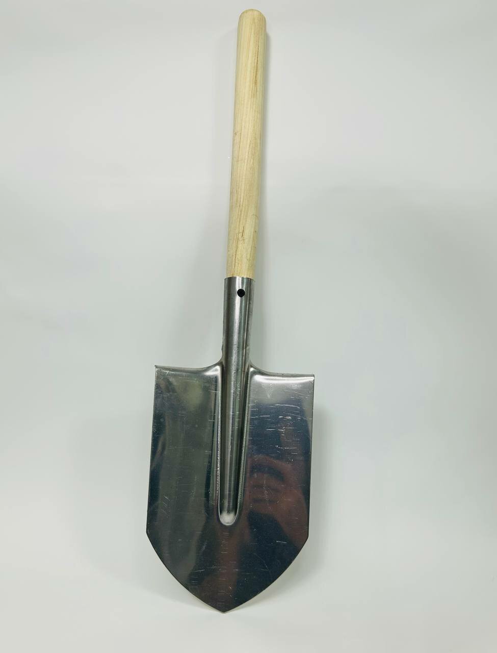 Лопата саперная, нержавеющая сталь, 153 x 180 x 585 мм, деревянный черенок, Россия Сибртех