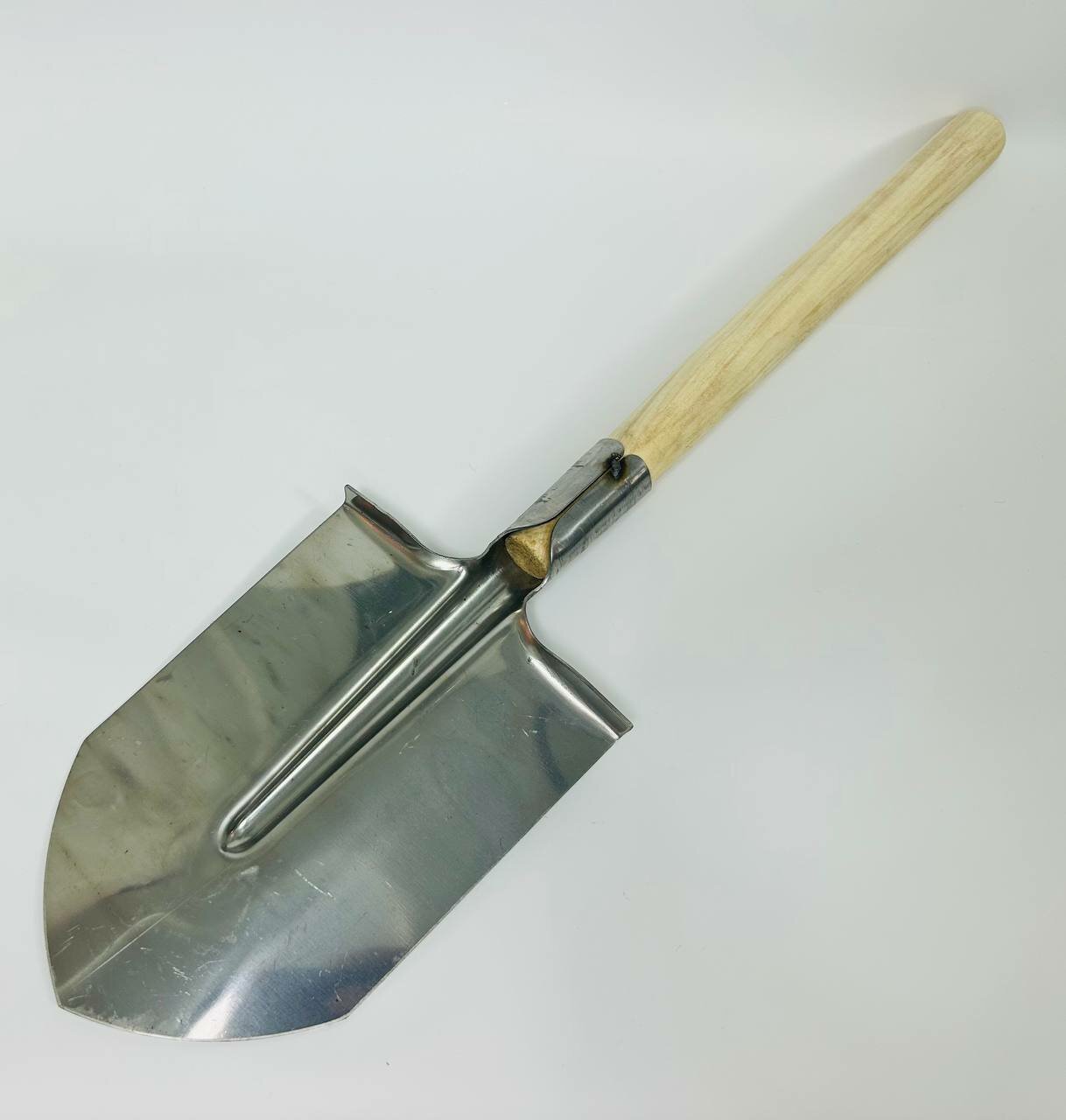 | Минусы: | Черенок- обычных лопат,не "сапёрной" формы.Вероятно ,что материал штыка и нержавейка ,но магнит притягивает.Заточил кромку и заменил саморез крепления . |