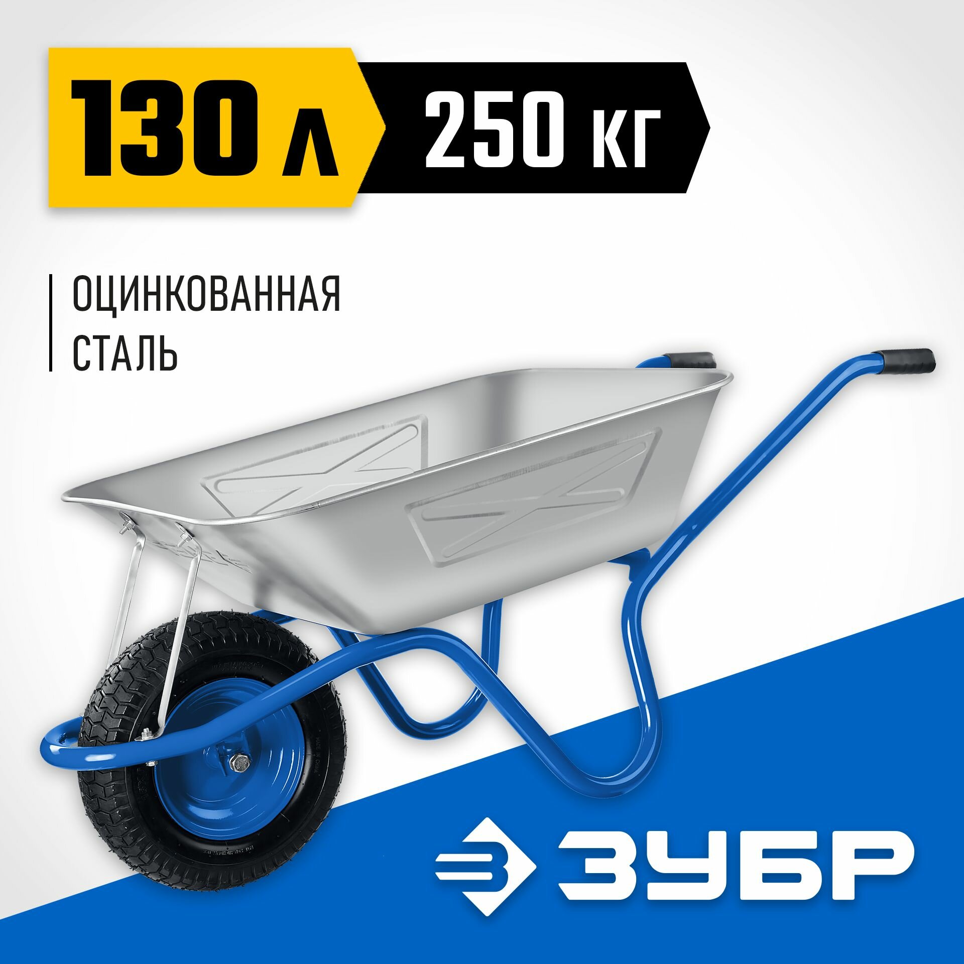 ЗУБР ПТ-250, 130 л, 250 кг, широкое пневматическое колесо, оцинкованная сталь(39907)