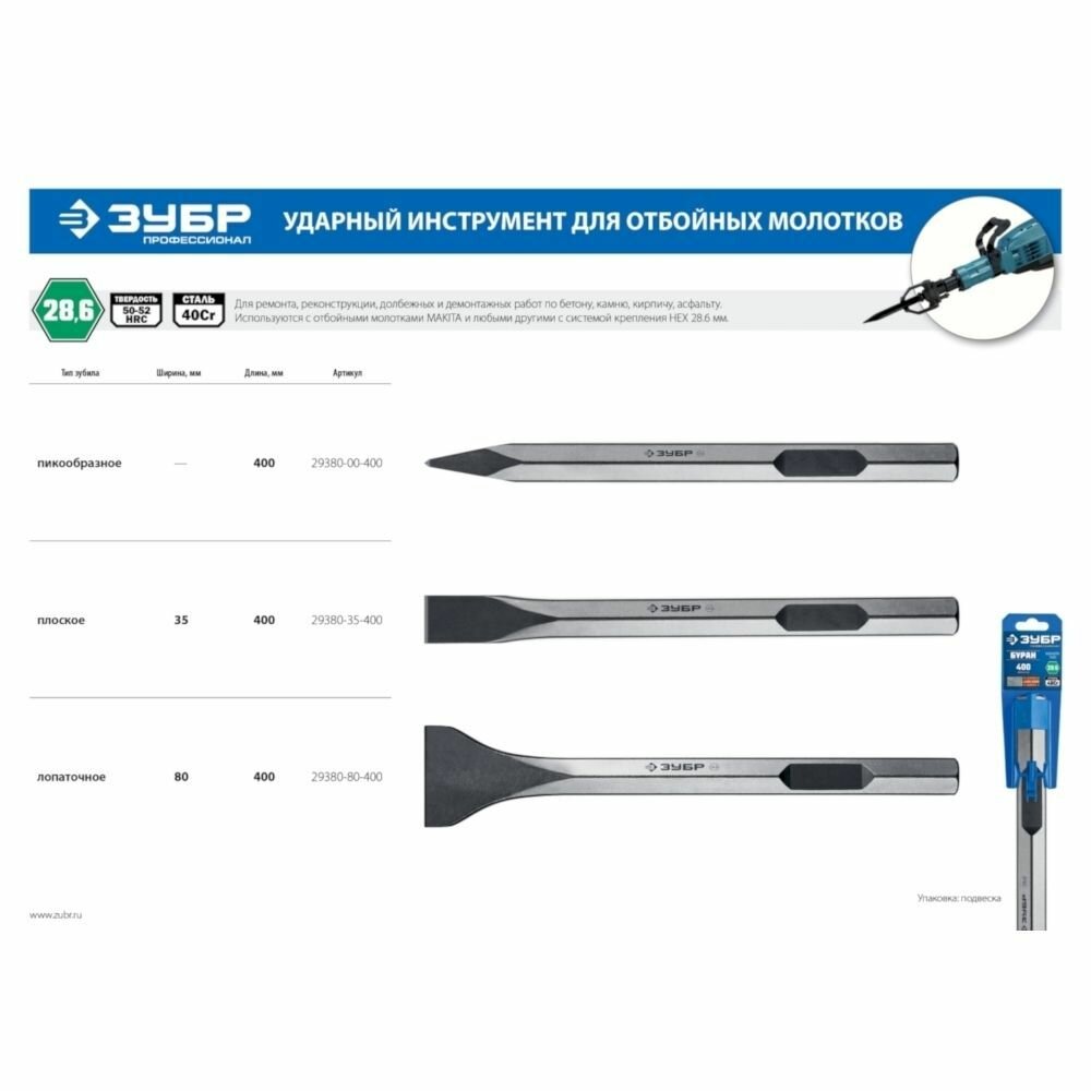 ЗУБР буран, 400 мм, HEX 28, пикообразное зубило (29380-00-400)