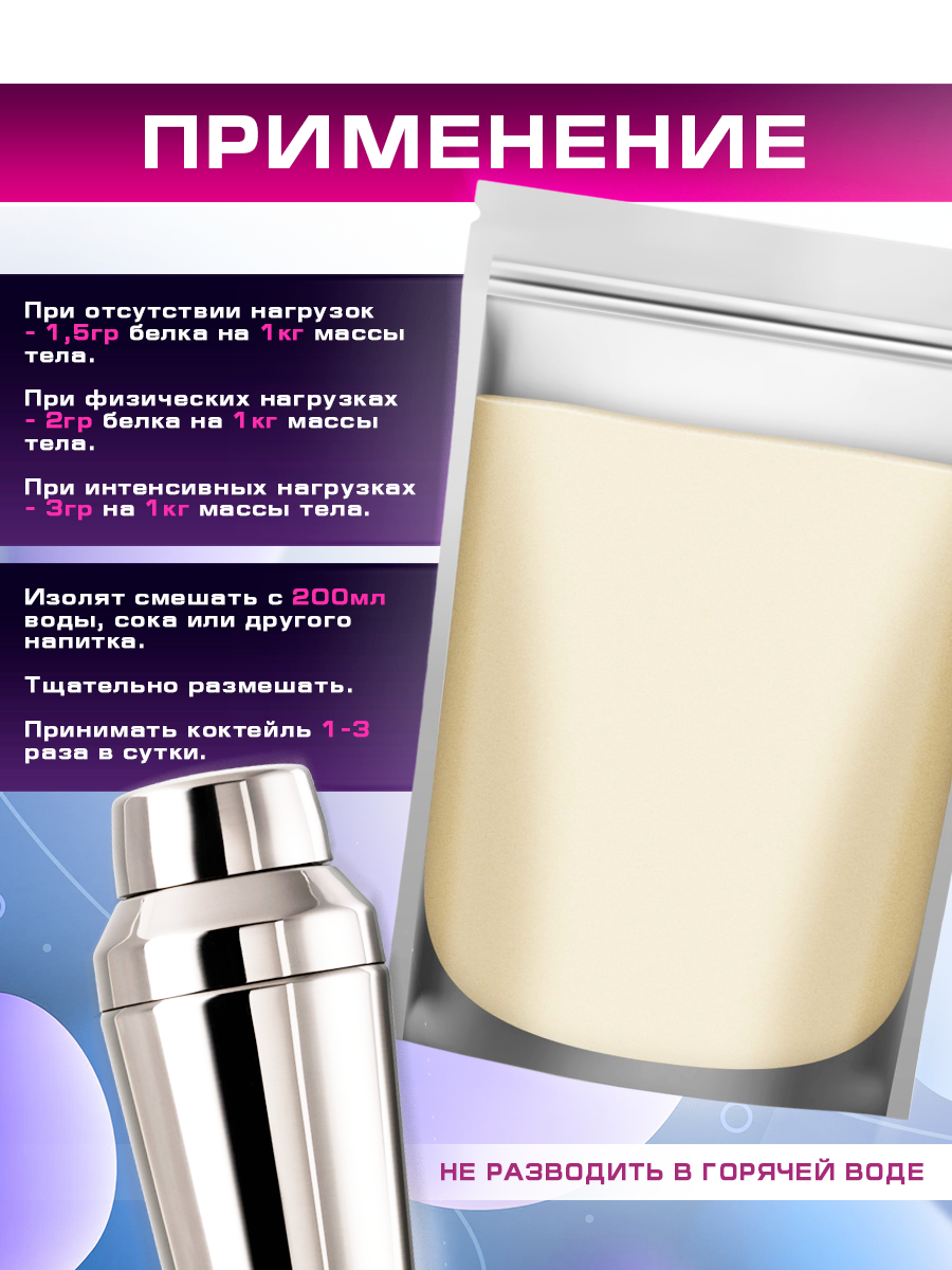 | Рекомендации по применению | Применение: Добавьте 1 большую мерную ложку (33 г) в любимый смуззи или смешайте с водой или молоком, и примите через 30-60 минут после тренировки — или в любое желаемое время в качестве дополнительного источника белка. |