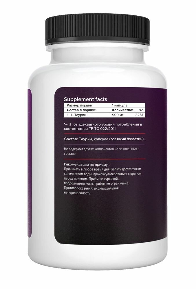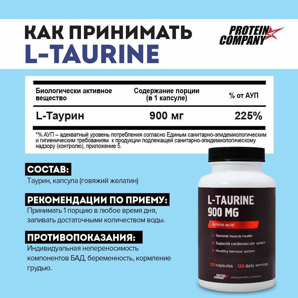 L-Taurine 900 mg / PROTEIN. COMPANY / Таурин / Капсулы / 120 порций / 120 капсул