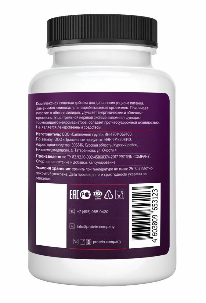 L-Taurine 900 mg / PROTEIN.COMPANY / Таурин / Капсулы / 120 порций / 120 капсул