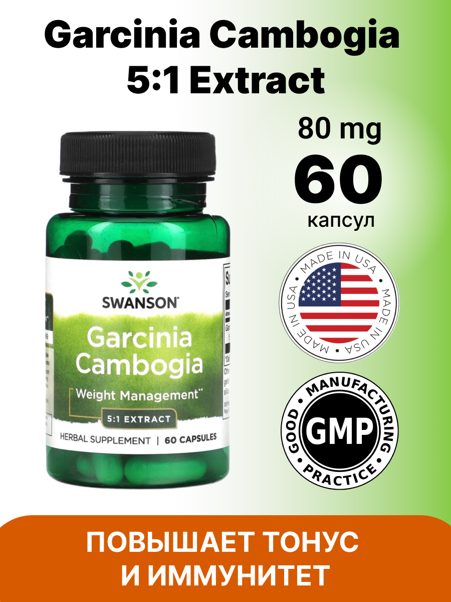 Swanson Garcinia Cambogia 5:1 Ext 80 мг, 60 капсул интересное: