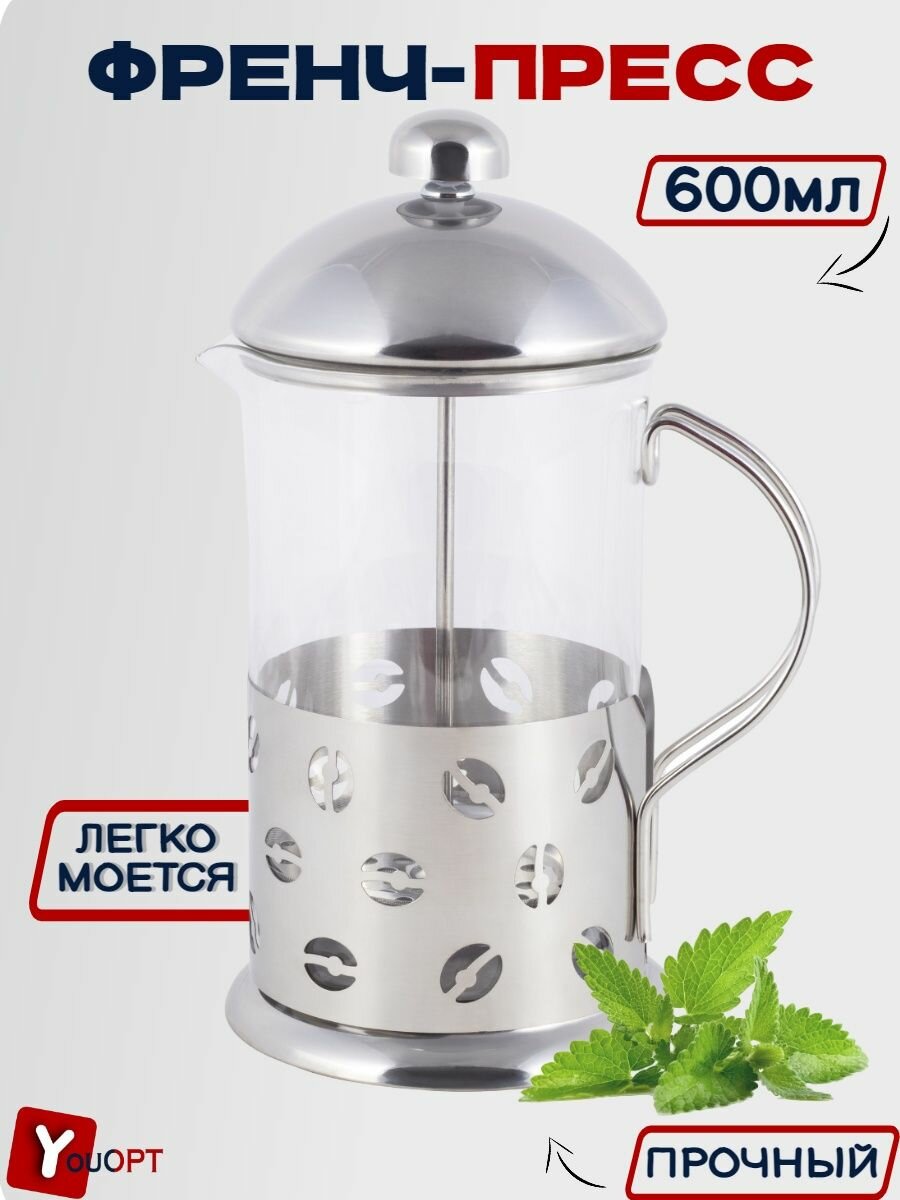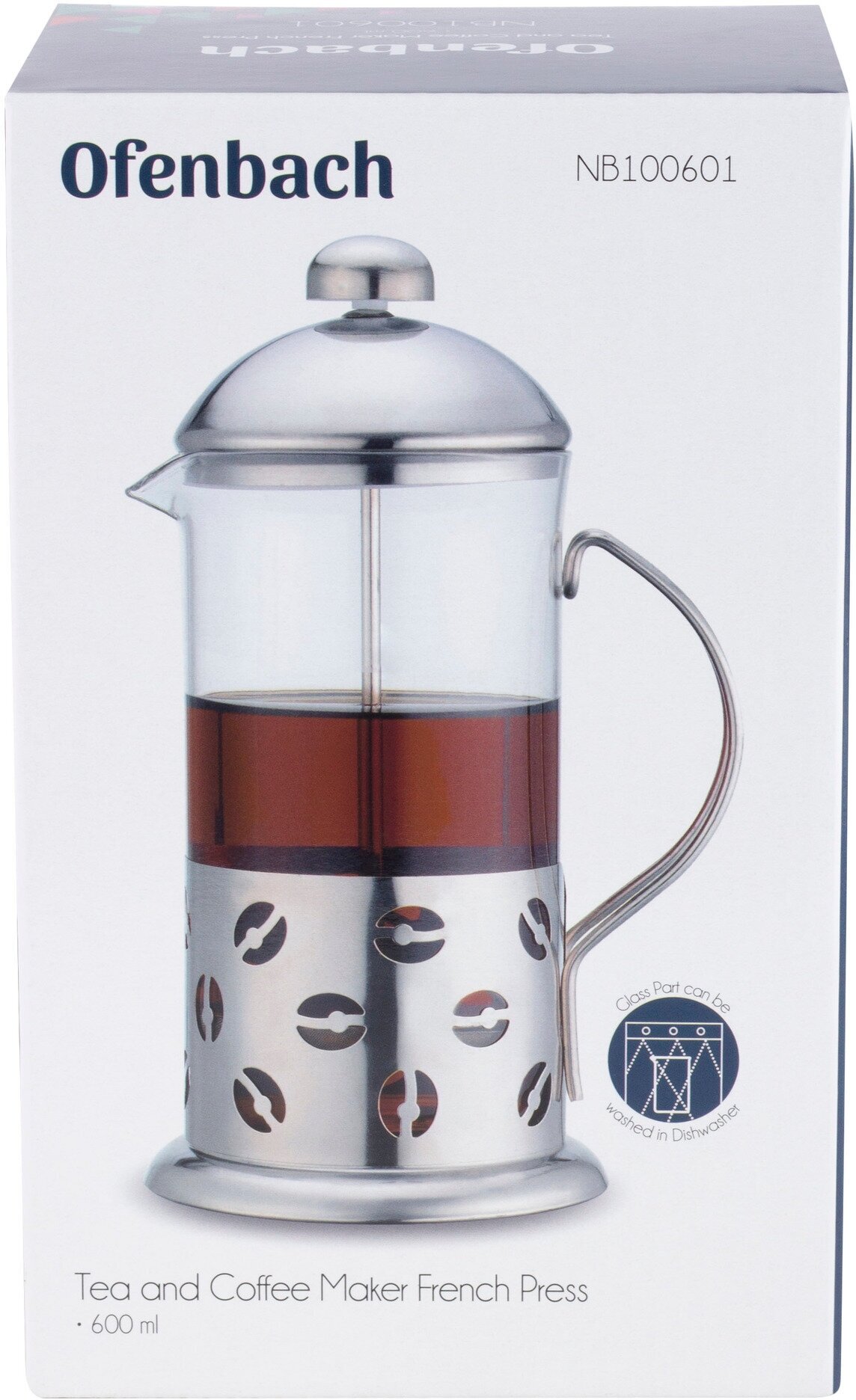 Купить Френч-пресс 600 мл. Ofenbach NB 100601 стекло, нержавеющая сталь (0,6 л. / серебристый)