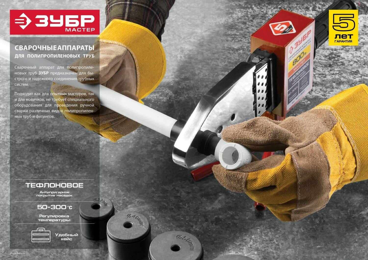 Сварочный аппарат ЗУБР д/труб 1000/2000Вт, 50-300С, насадки 20,25,32, 40,50,63мм