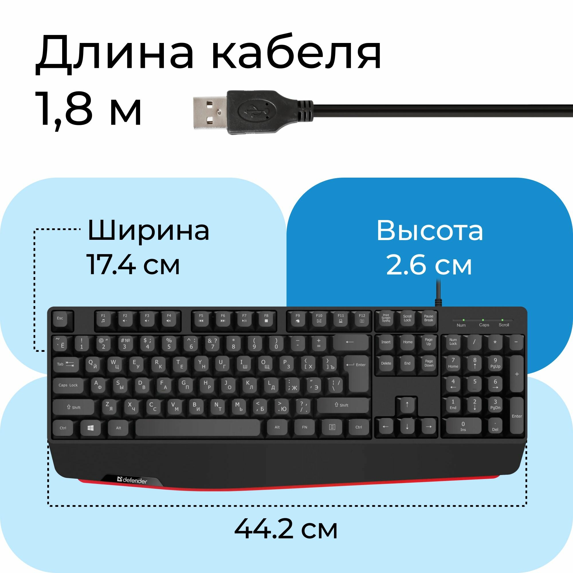 Купить Клавиатура Defender Atom HB-546, USB, черный тип подключения: проводная, интерфейс: USB
