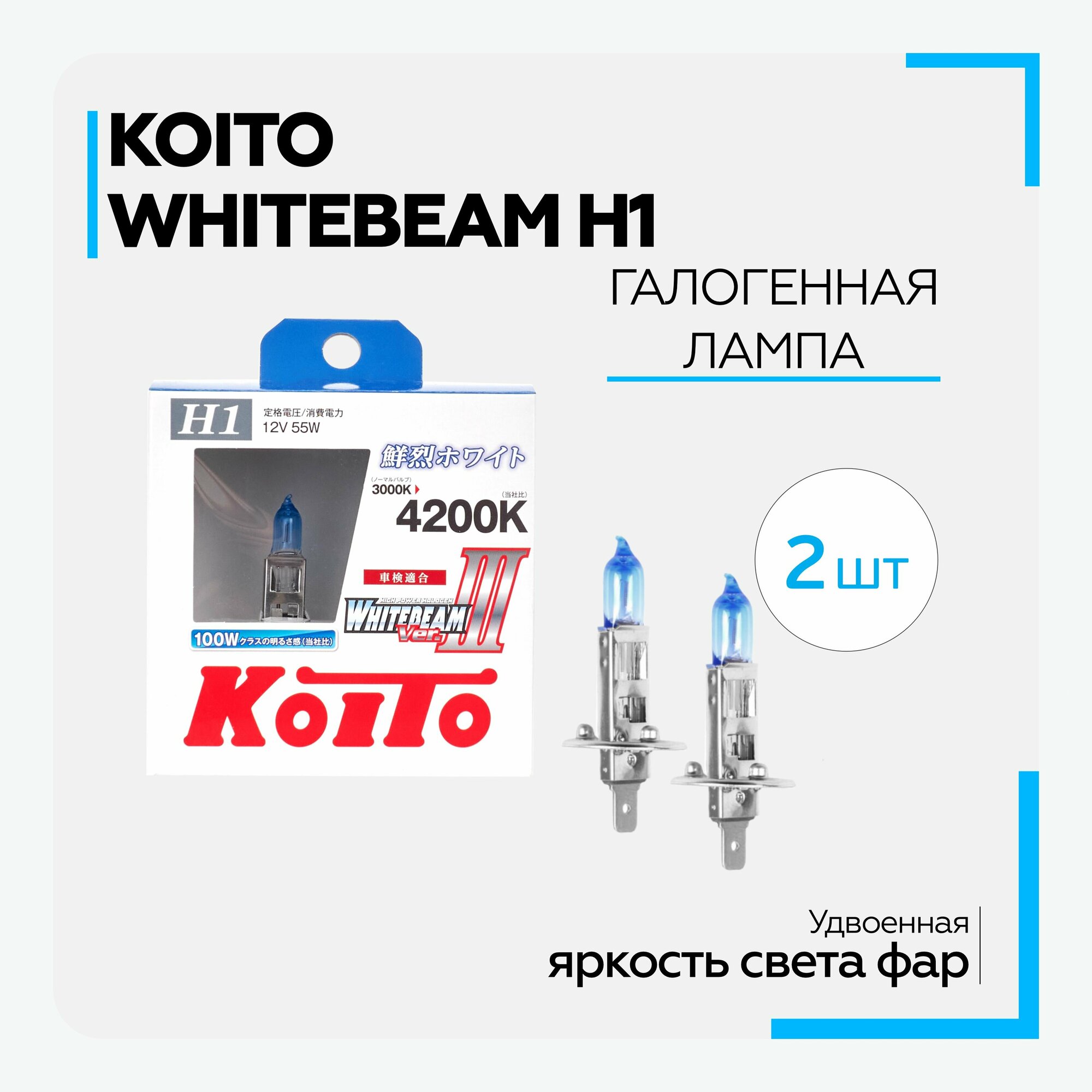 Лампа Koito Whitebeam H1 12V 55W (100W) 4200K ( 2 шт.)