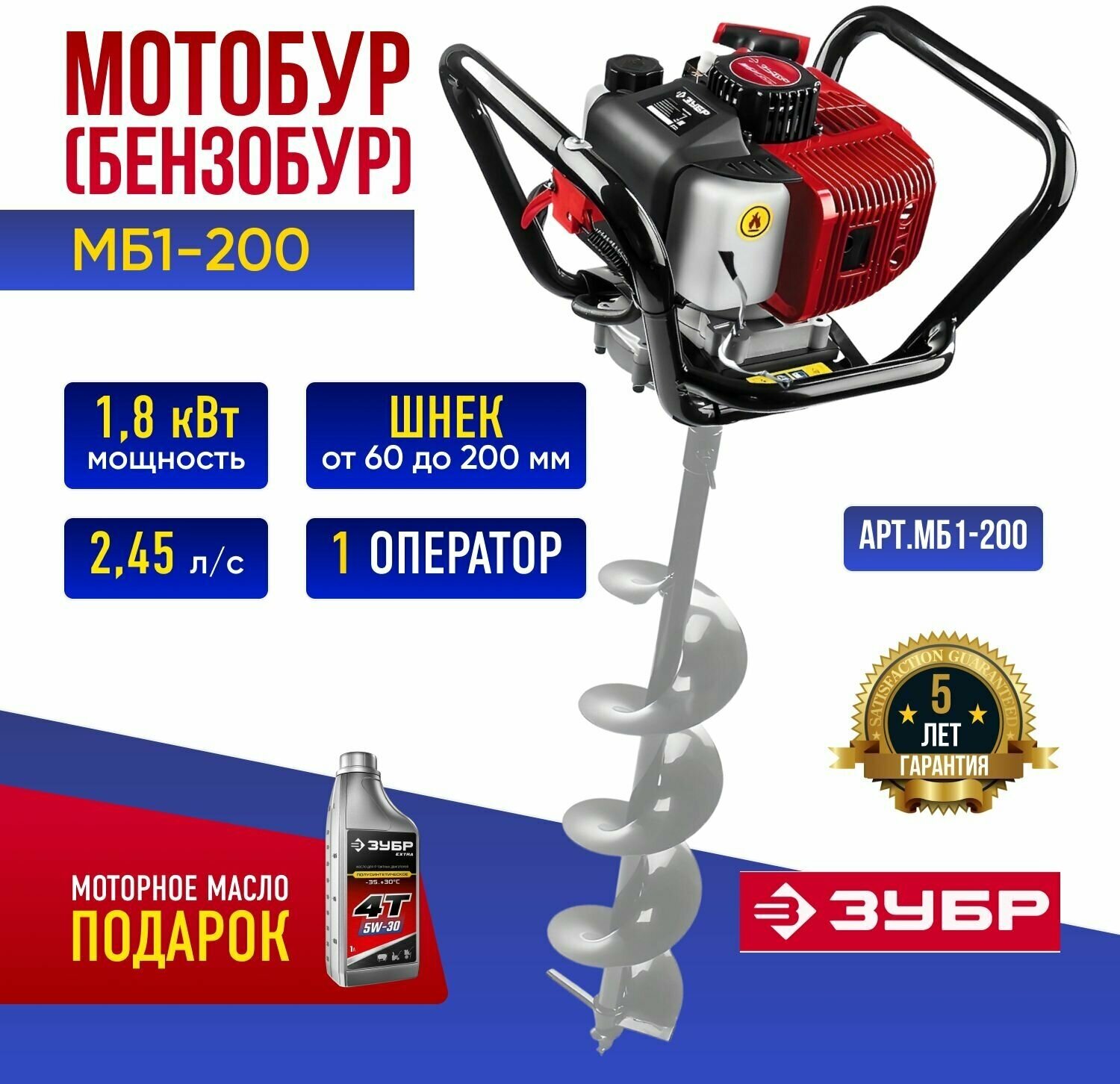 Мотобур (бензобур) ЗУБР ⌀60-200 мм 52 см3 МБ1-200