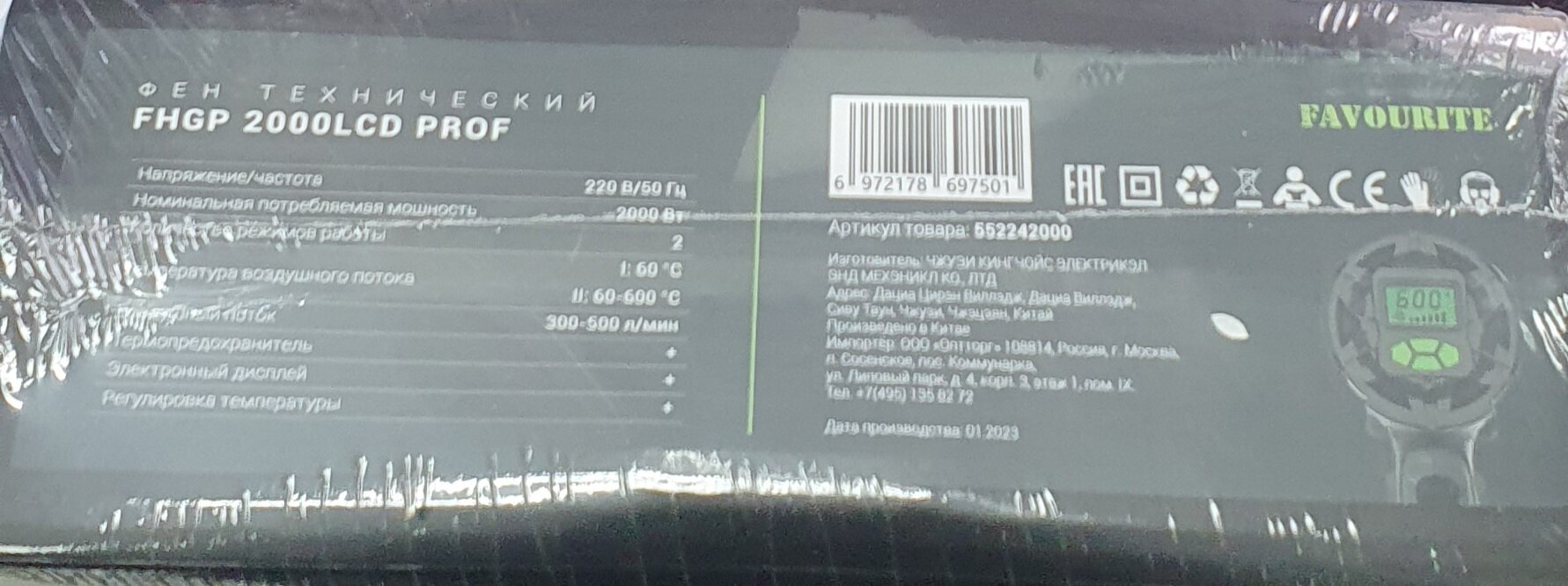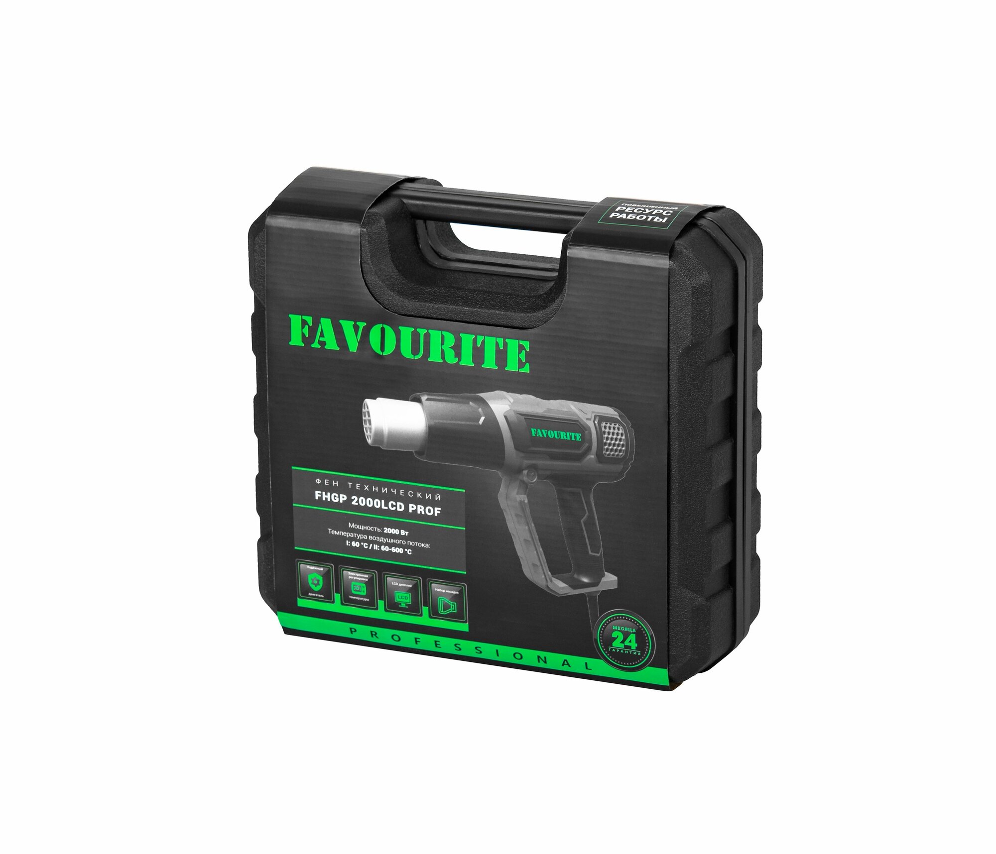 Технический фен FAVOURITE 2000 Вт, 2 режима работы, 60/60-600 С, 300-500 л/мин, LCD дисплей, набор насадок FHGP 2000LCD PROF