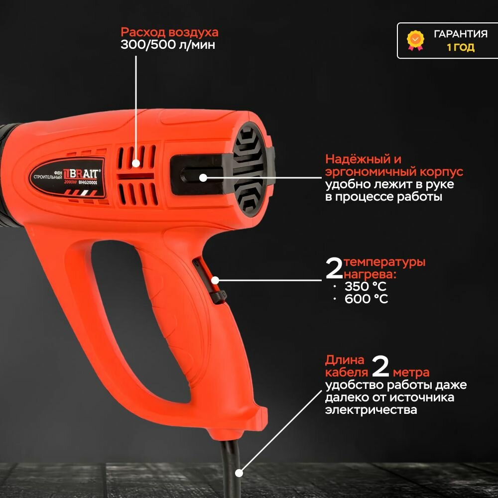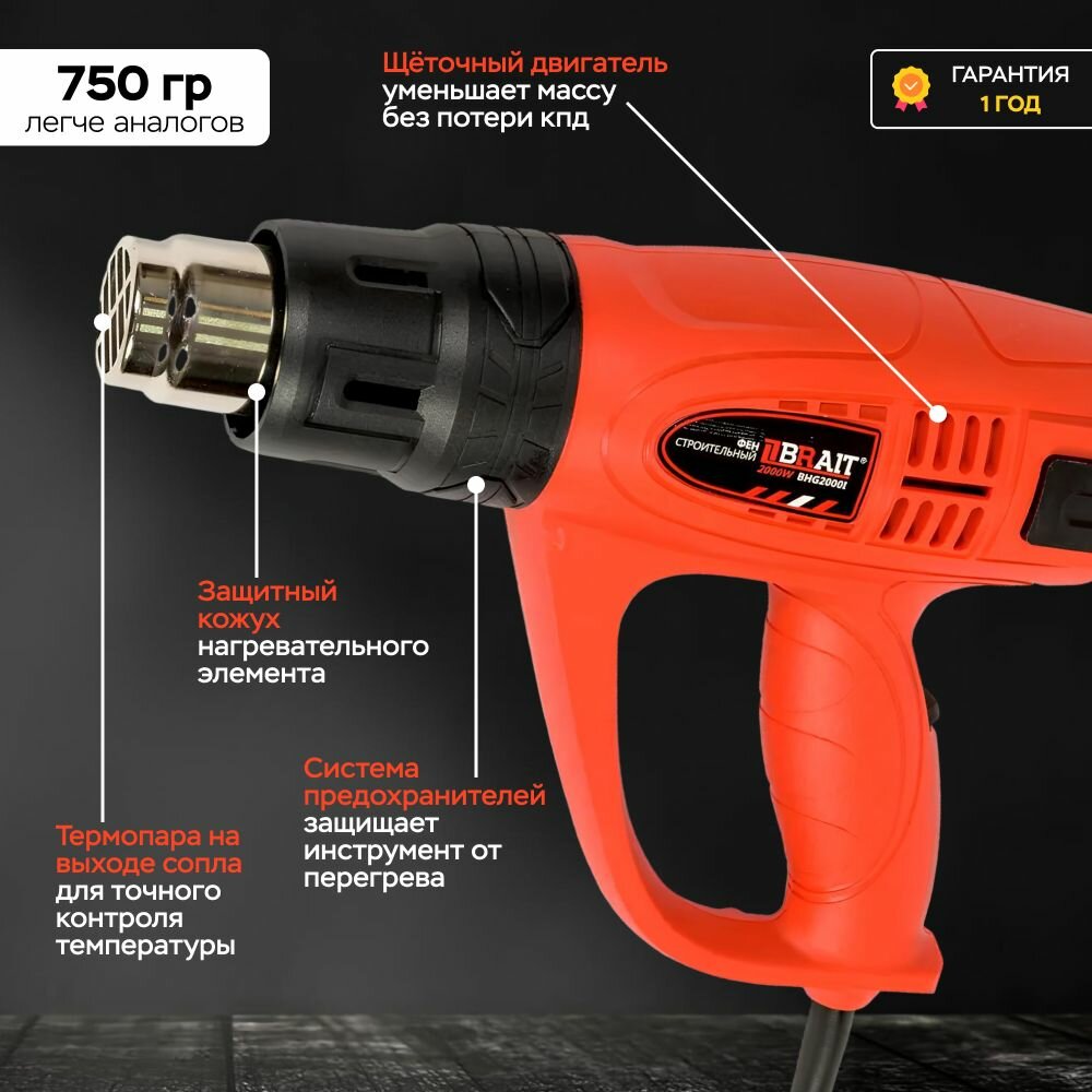 Фен строительный BRAIT BHG2000N, 2000 Вт