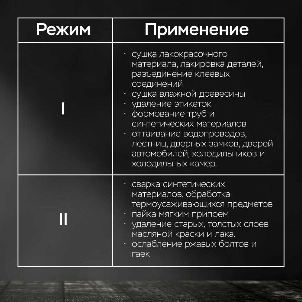 | Назначение | удаление краски / разморозка труб / сварка пластика |