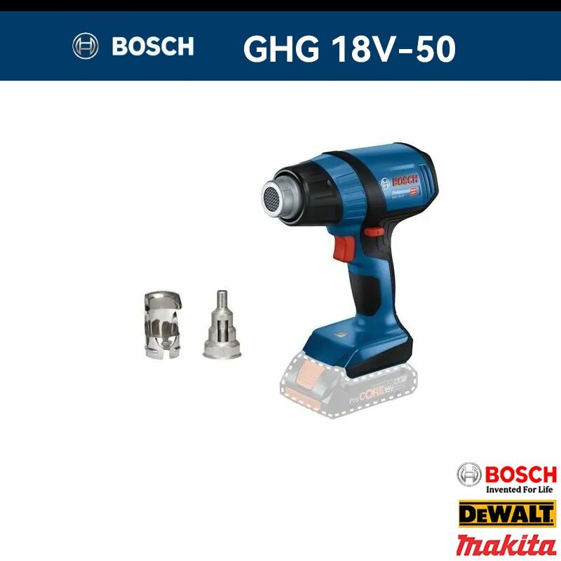 Купить Аккумуляторный строительный Фен Bosch GHG 18V-50, 18В, без акк и з/у, 500 градусов, 175л/мин, кейс (06012A6500)