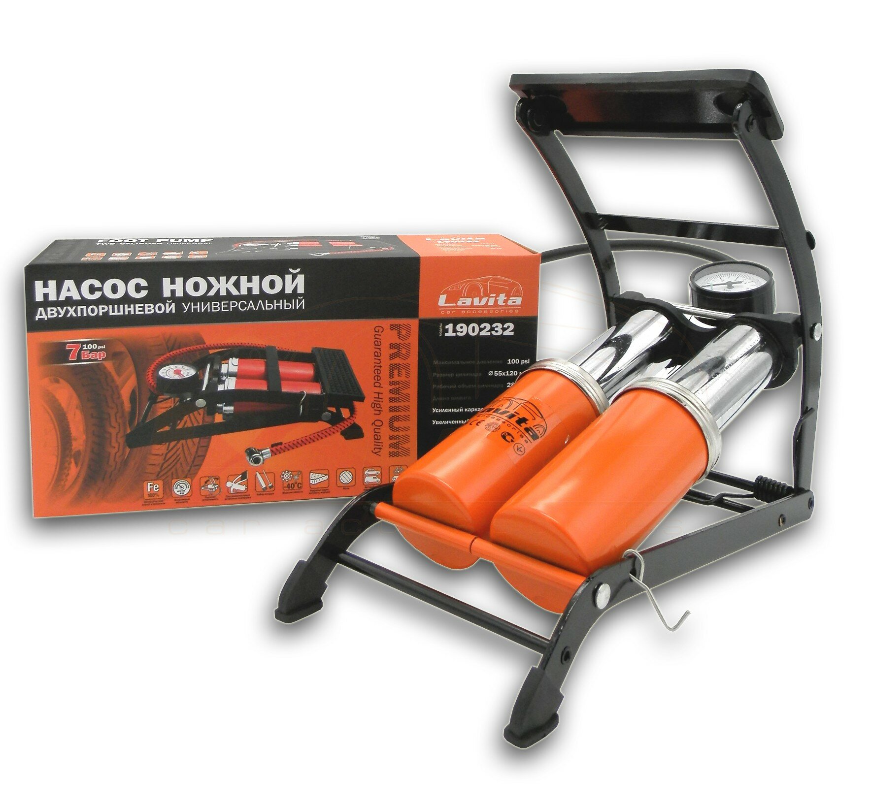 LAVITA LA190232 Насос автомобильный ножной 570 см2 (двухпоршневой) 7 АТМ; Lavita