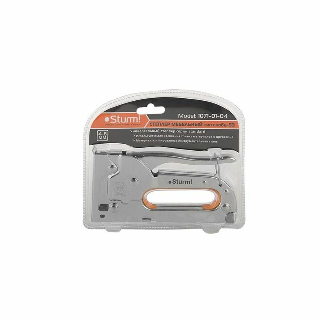 Строительный степлер механический, Sturm, мебельный со скобами, 4-8мм, серебристый, 1 шт.