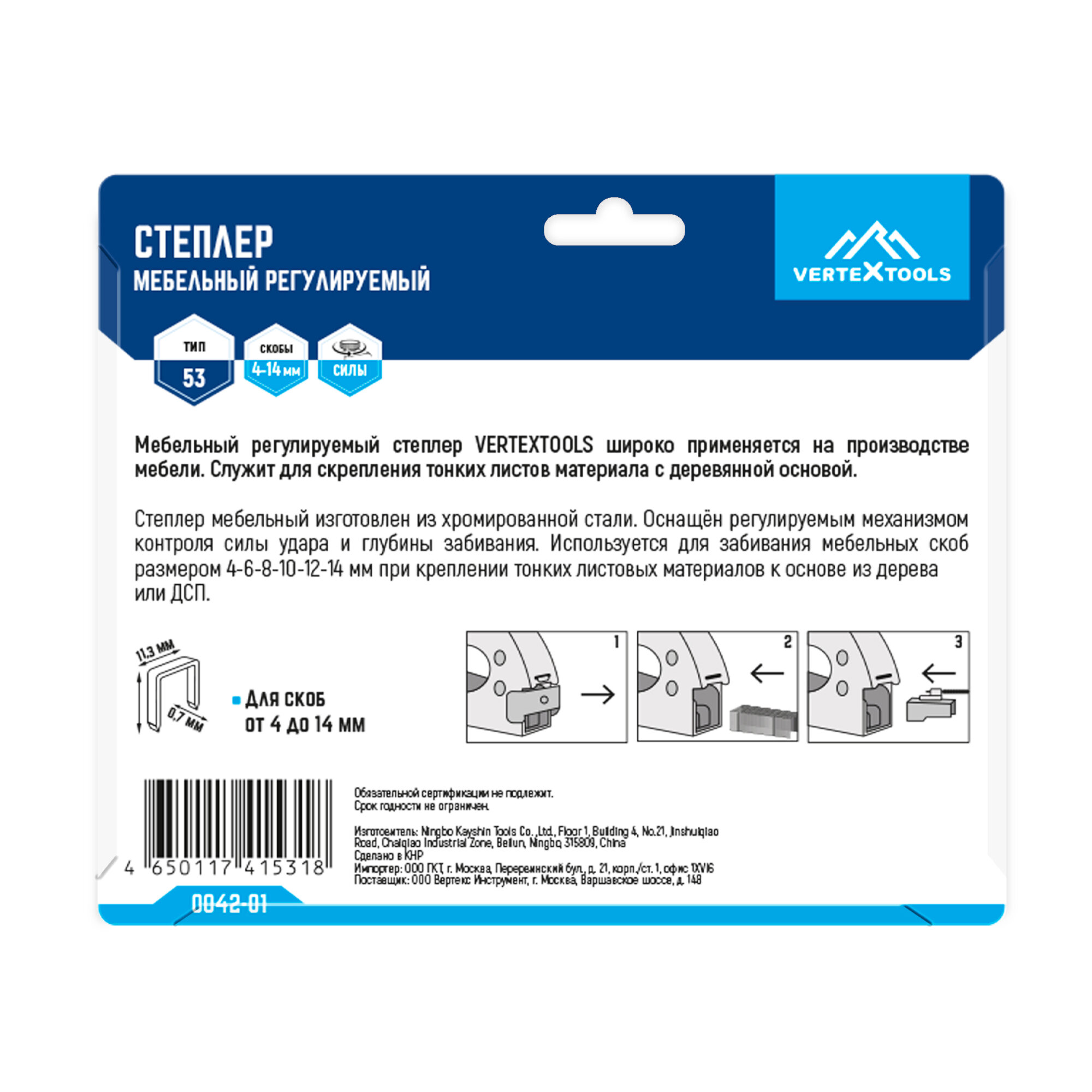 Степлер мебельный VertexTools 53, рычажный, механический, синий интересное: