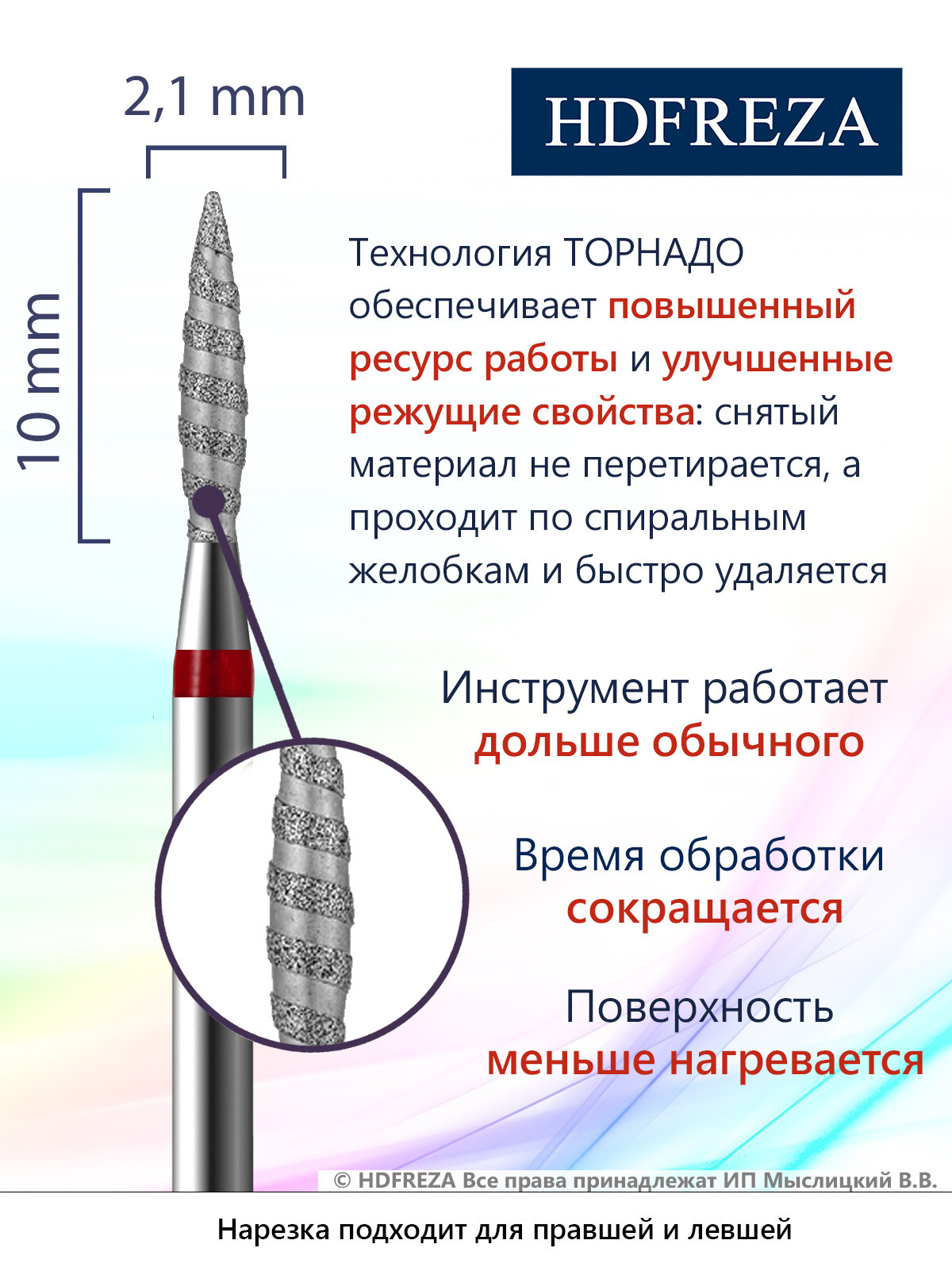 Фреза для маникюра и педикюра алмазная HDFREZA для кутикулы 804 243 514 021 Тонкая торнадо (упаковка 3 шт) интересное: