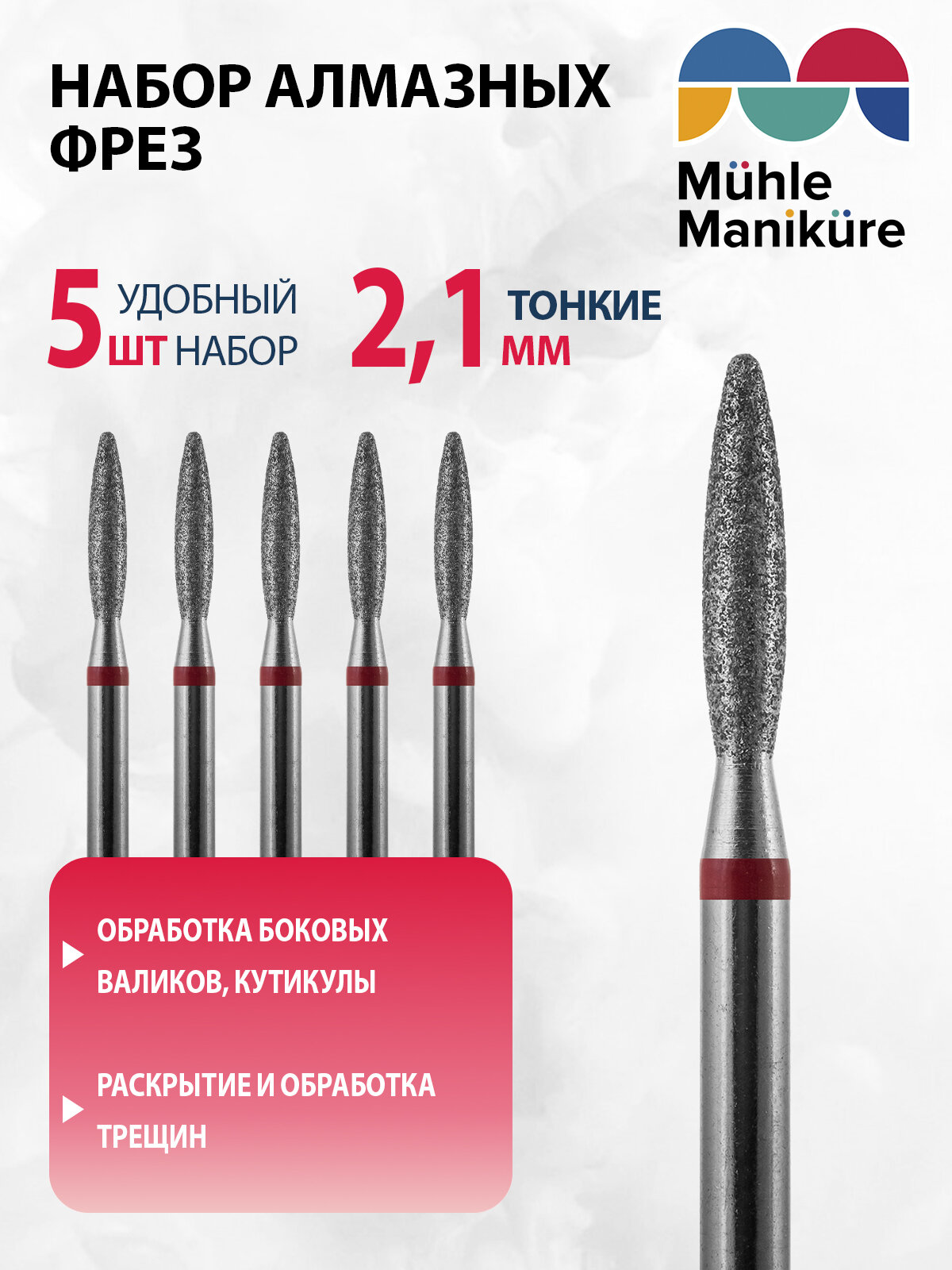 Фреза для маникюра и педикюра алмазная Muhle Manikure для кутикулы 806 244 514 021 Тонкая пламя (упаковка 5 шт) интересное: