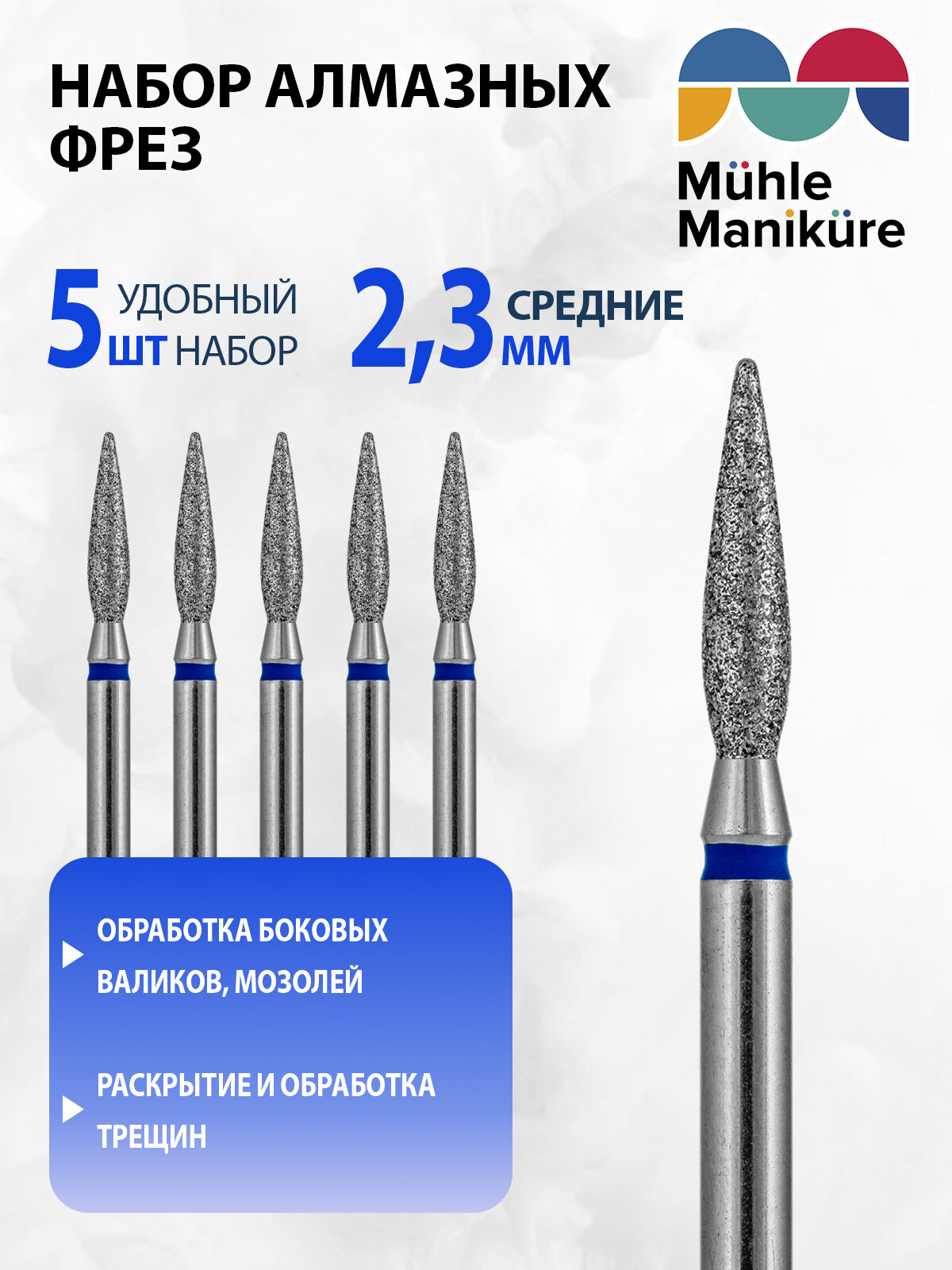 Фреза для маникюра и педикюра алмазная Muhle Manikure для кутикулы 806 244N 514 023 Тонкая пламя (упаковка 5 шт)