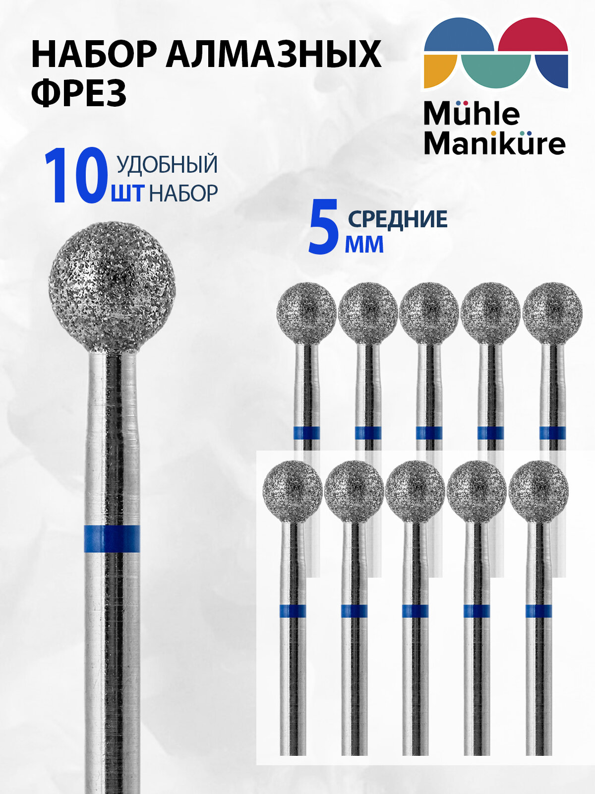 Muhle Manikure Фреза для маникюра и педикюра алмазная 806 001 524 050 Средняя синяя шар (упаковка 10 шт) d-5.0