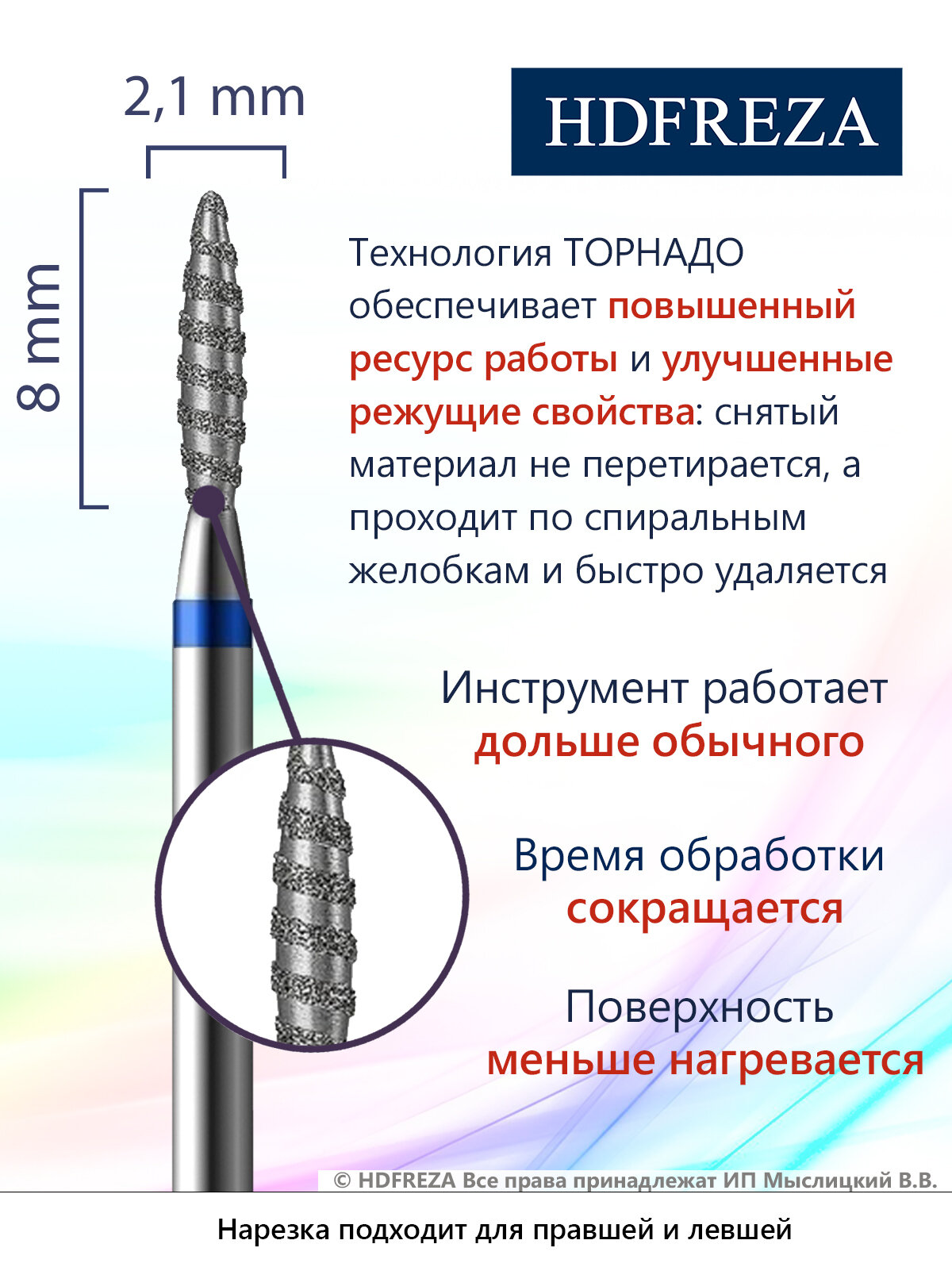 Фреза для маникюра и педикюра алмазная HDFREZA для кутикулы 804 244 524 021 Средняя синяя торнадо (упаковка 3 шт) интересное: