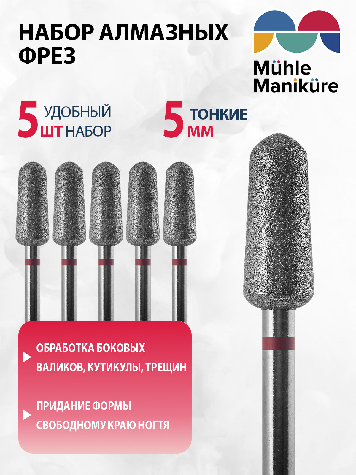 Фреза для маникюра и педикюра алмазная Muhle Manikure для кутикулы 806 263 514 050 Тонкая цилиндр (упаковка 5 шт) интересное: