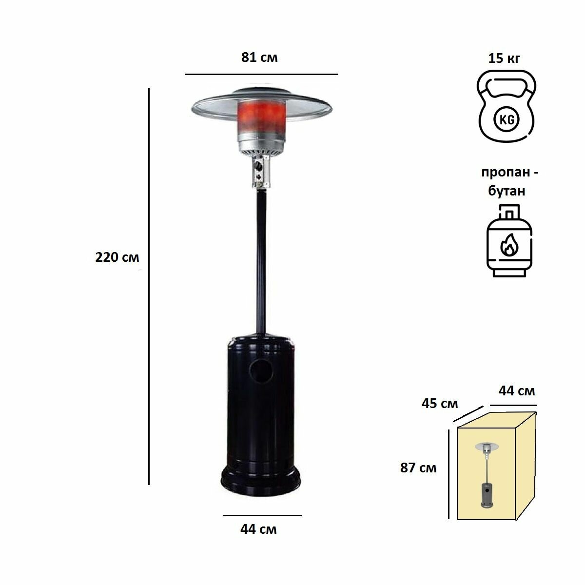 | Тип газового обогревателя | уличный обогреватель |