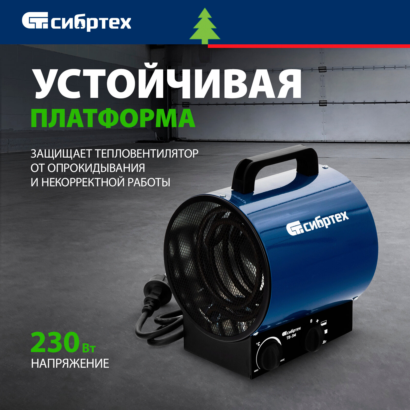 СИБРТЕХ Тепловая пушка ТВ-3М (тепловентилятор), 230 В, 3 режима: вентилятор/1500 Вт /3000 Вт Сибртех ( 96437 )