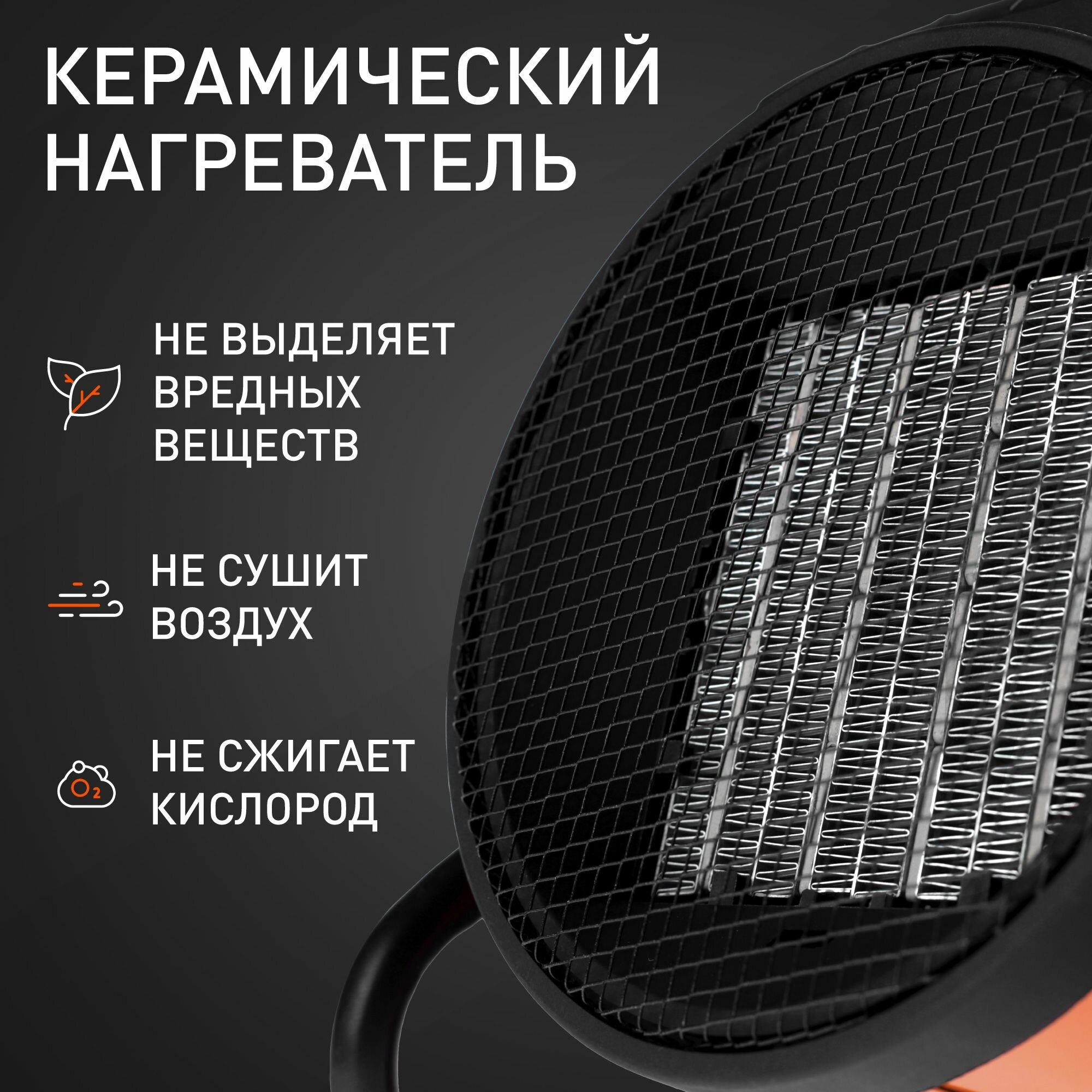 Тепловентилятор электрический PATRIOT PTR 3S, 2.0 кВт, 220В, терморегулятор, керамический нагревательный элемент PTC / портативный обогреватель / бытовой / тепловая пушка