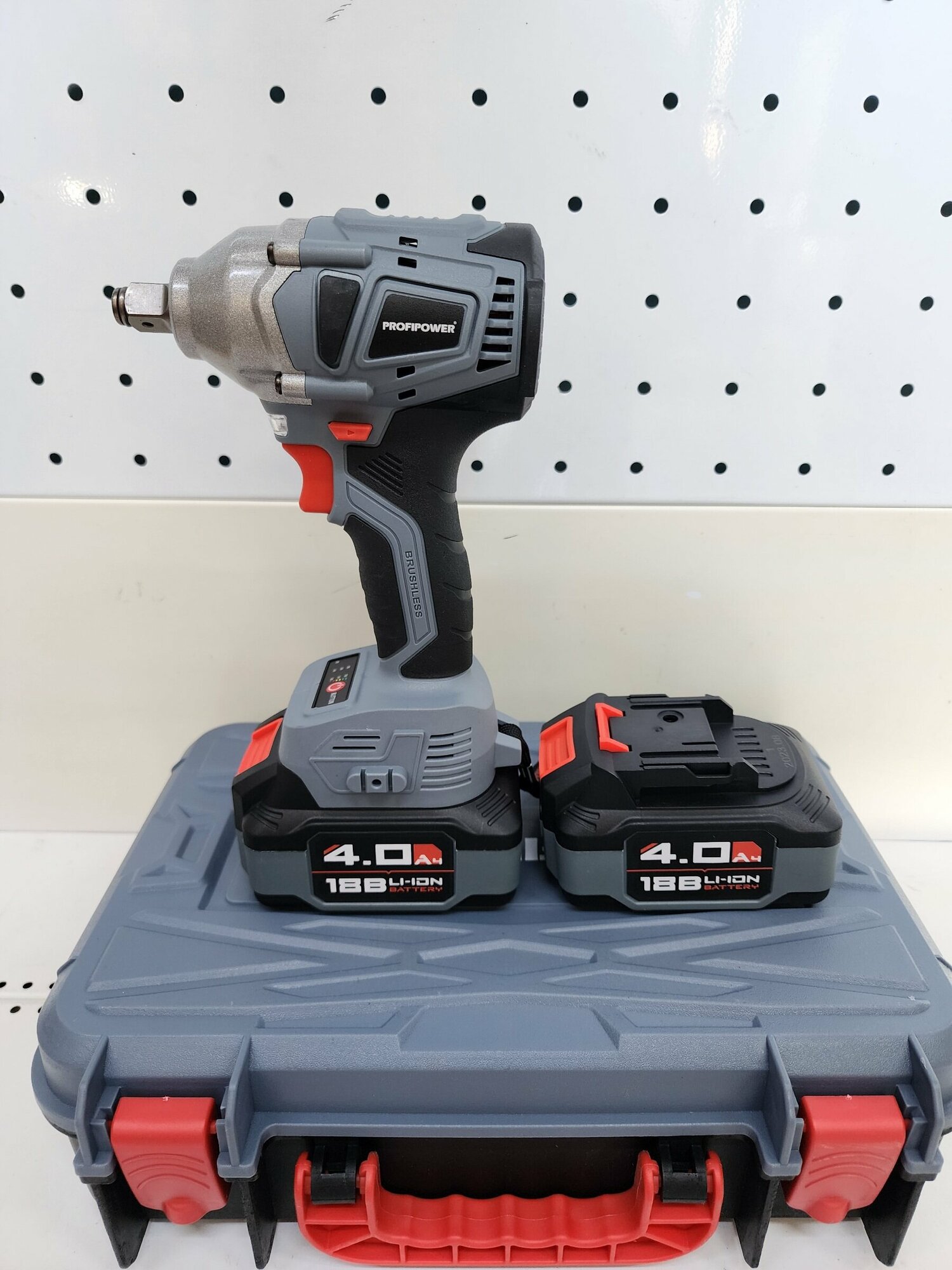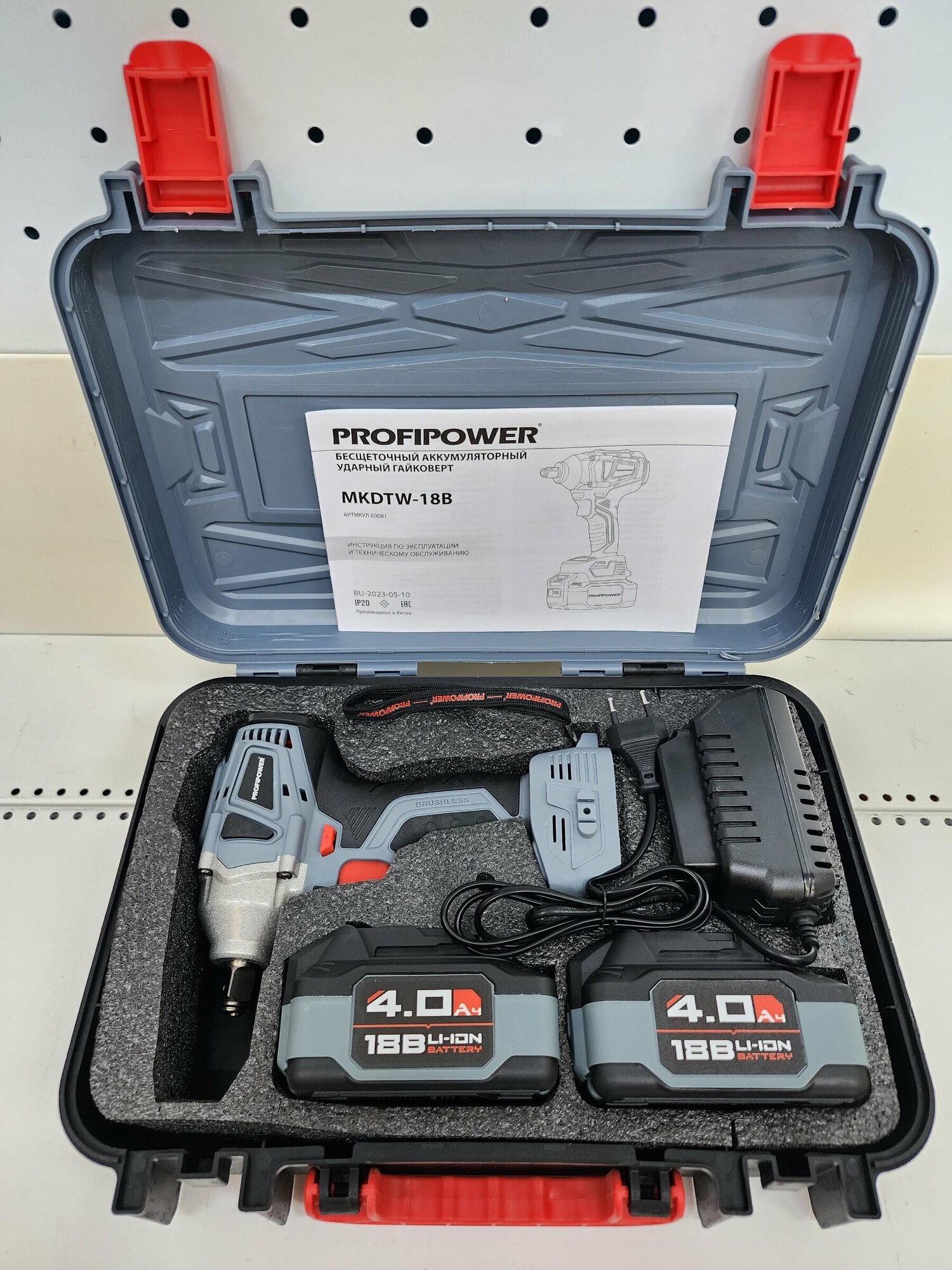 Бесщеточный аккумуляторный ударный гайковерт Profipower MKDTW-18B, E0081 (18B, 330Нм, 2х4,0Ач LiION, зарядное устройство, кейс))
