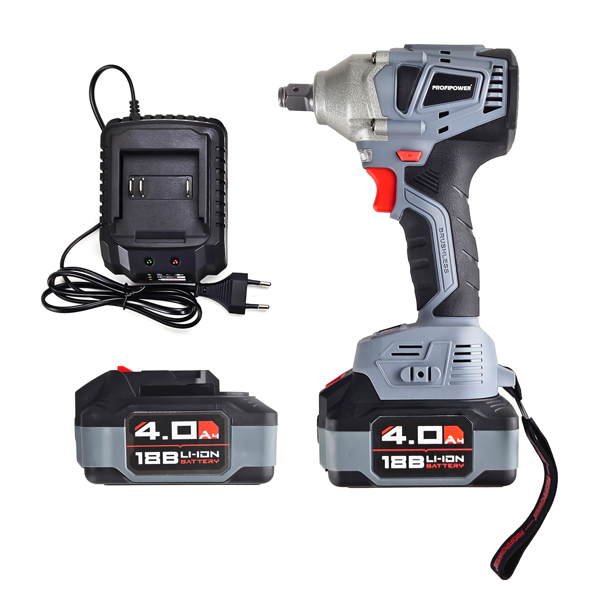 Аккумуляторный гайковерт ProfiPower DTW-18V (E0081) (18 В, бесщеточный, 2 Li-ion аккумулятора ёмкостью 4.0 Ач