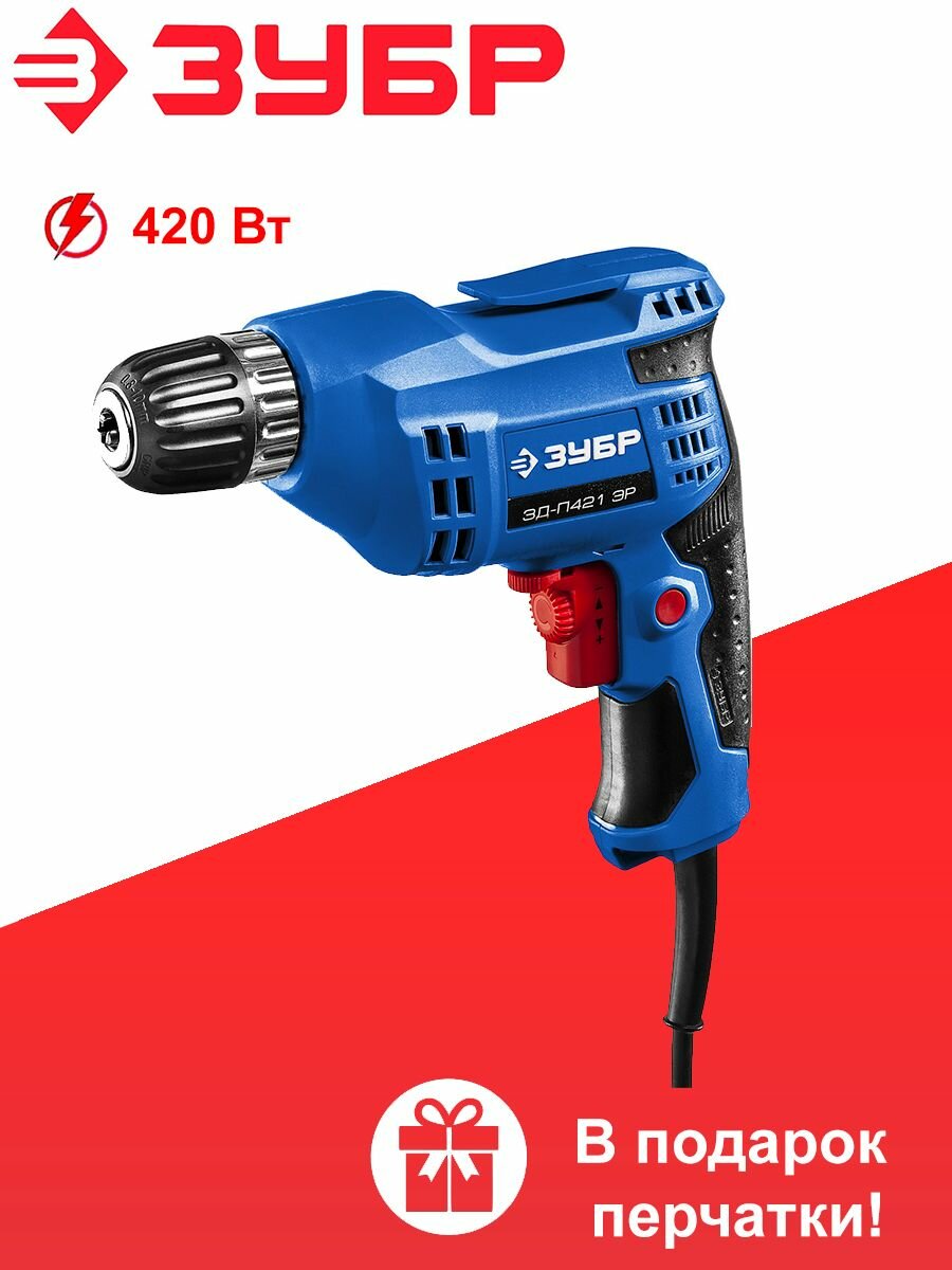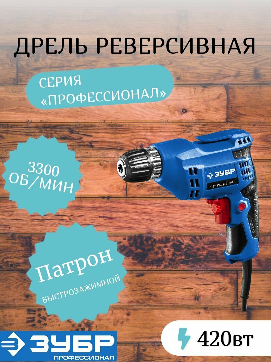 Дрель ЗД-П421 ЭР реверсивная, БЗП, 10 мм, 420 Вт ЗУБР Профессионал