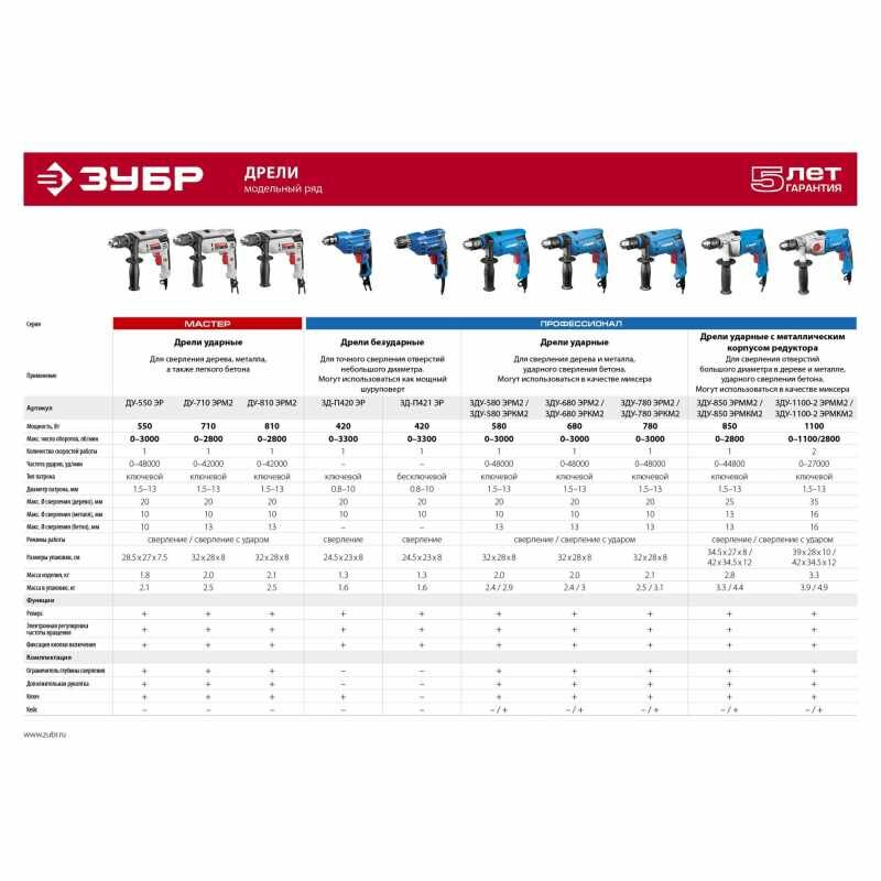 Безударная дрель ЗУБР, серия Профессионал, 420 Вт