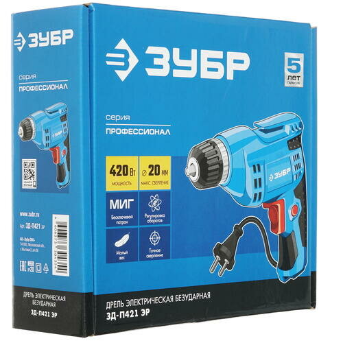 Купить ЗУБР 420 Вт, дрель безударная реверсивная ЗД-П421 ЭР Профессионал