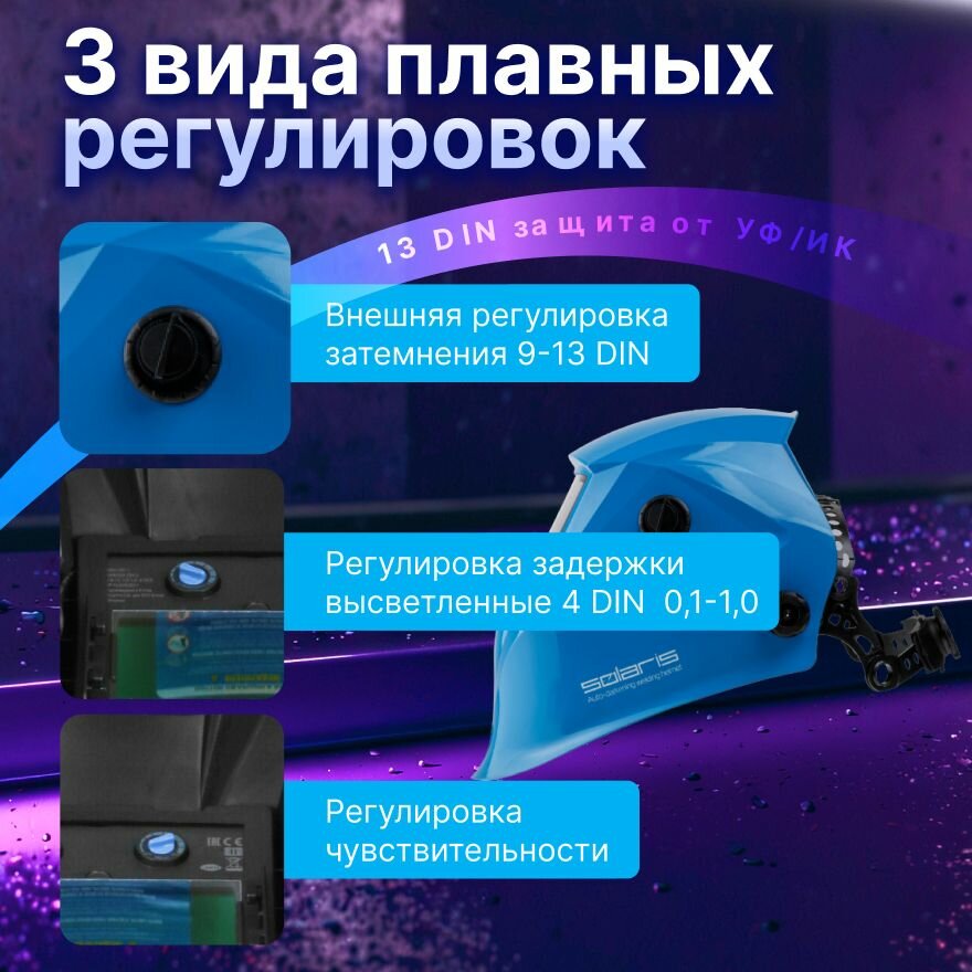 Маска сварочная хамелеон Solaris ASF520S (синий) (1/2/1/2; 95x34 мм; DIN 4/9-13 (регул)