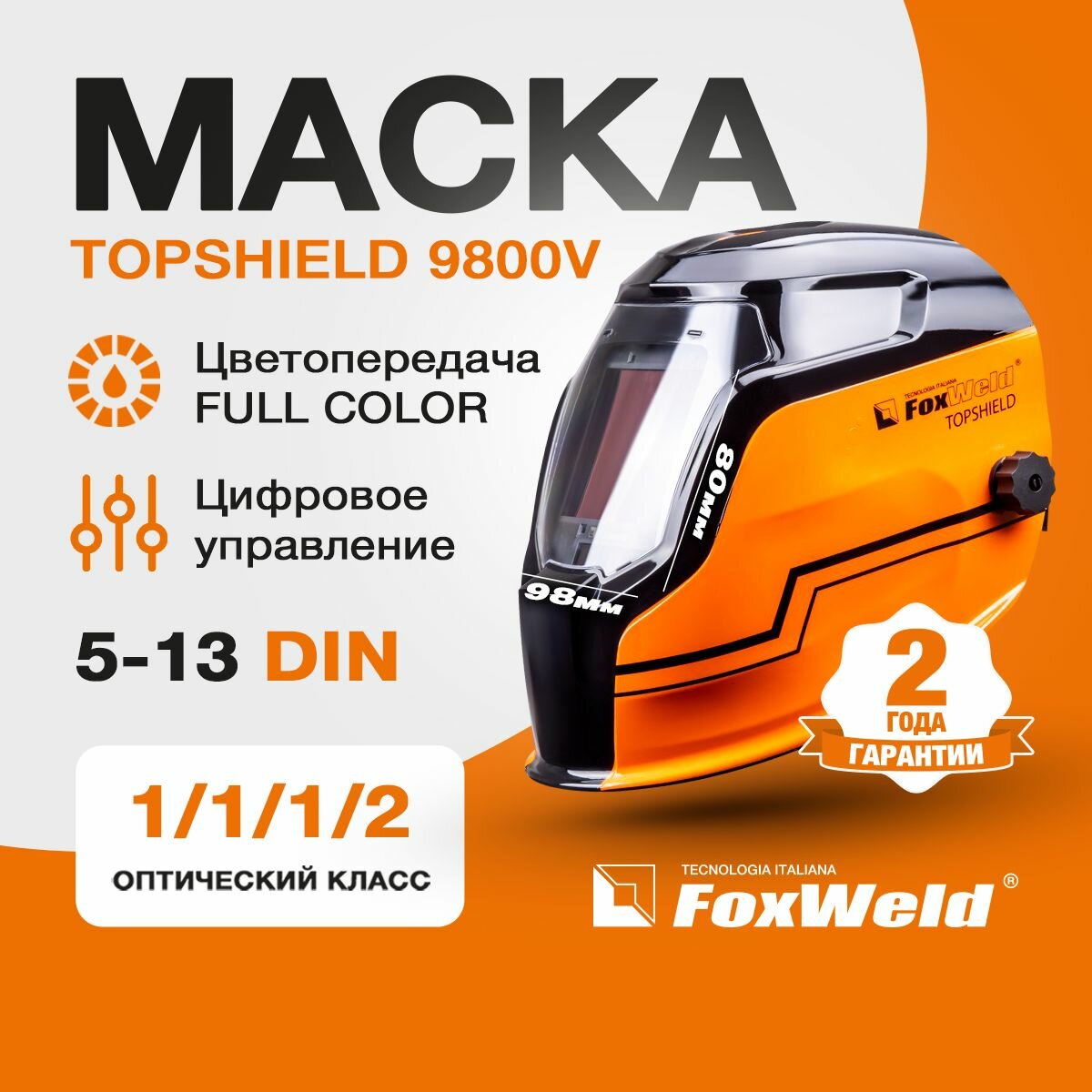 Маска сварщика с автоматическим светофильтром (Ф-Р 9800V) FoxWeld TOPSHIELD (6593)