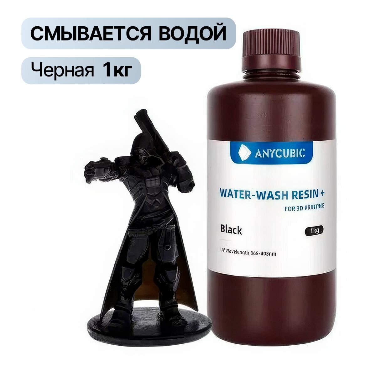 Купить Фотополимер Anycubic Water Wash Resin+ Black 1кг