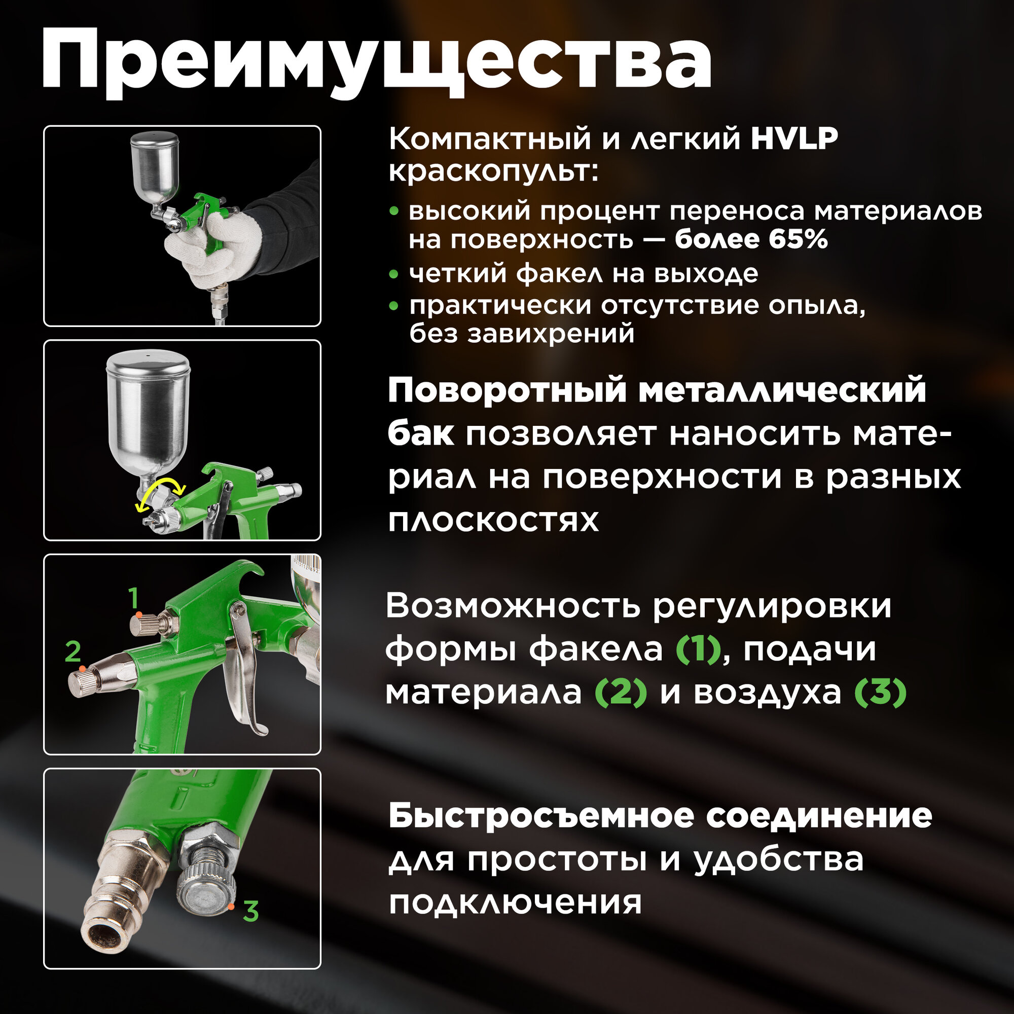 Краскопульт пневматический HVLP 0,2 л ECO SG-1500 (EC1530-10) интересное: