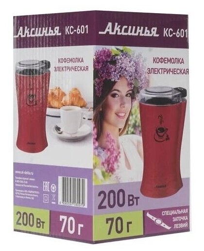 СохранитьКофемолка аксинья КС-601: бордовая: 200 Вт., вместимость 70гр, интересное: