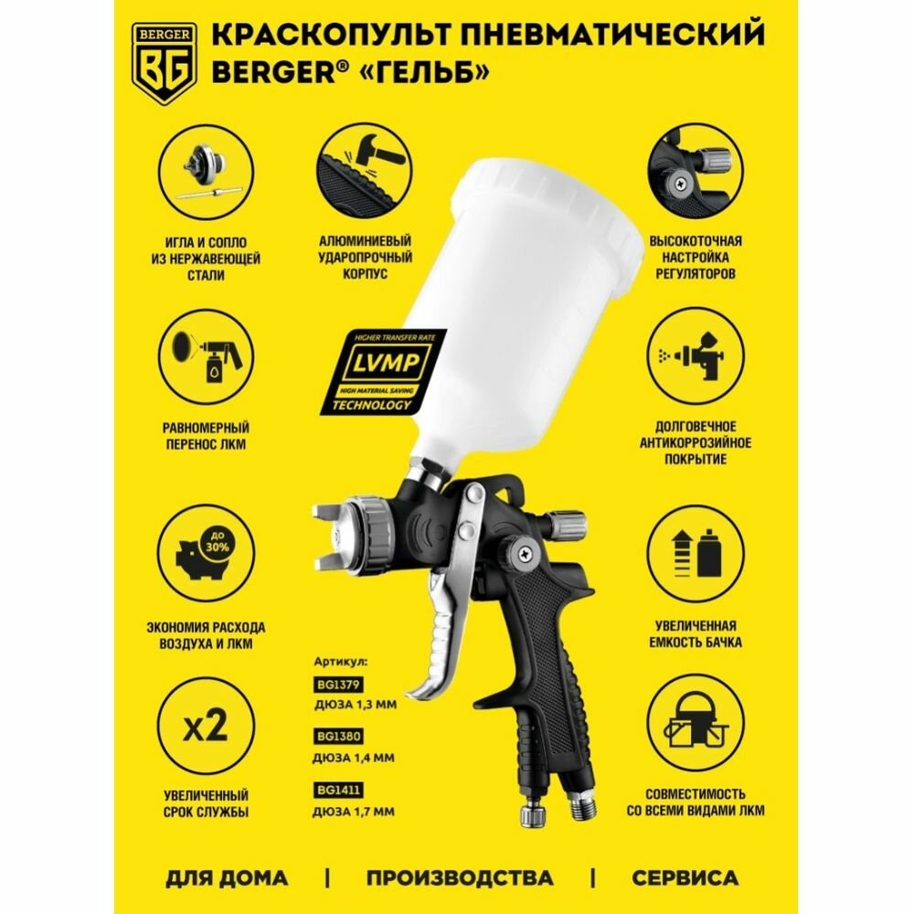 Купить Краскопульт пневматический BERGER "гельб" LVMP 1.4 мм BG1380