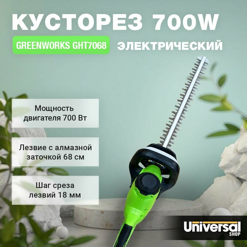 Кусторез электрический / триммер для живой изгороди Greenworks GHT7068 Deluxe, длина ножа 68 см, 700 Вт