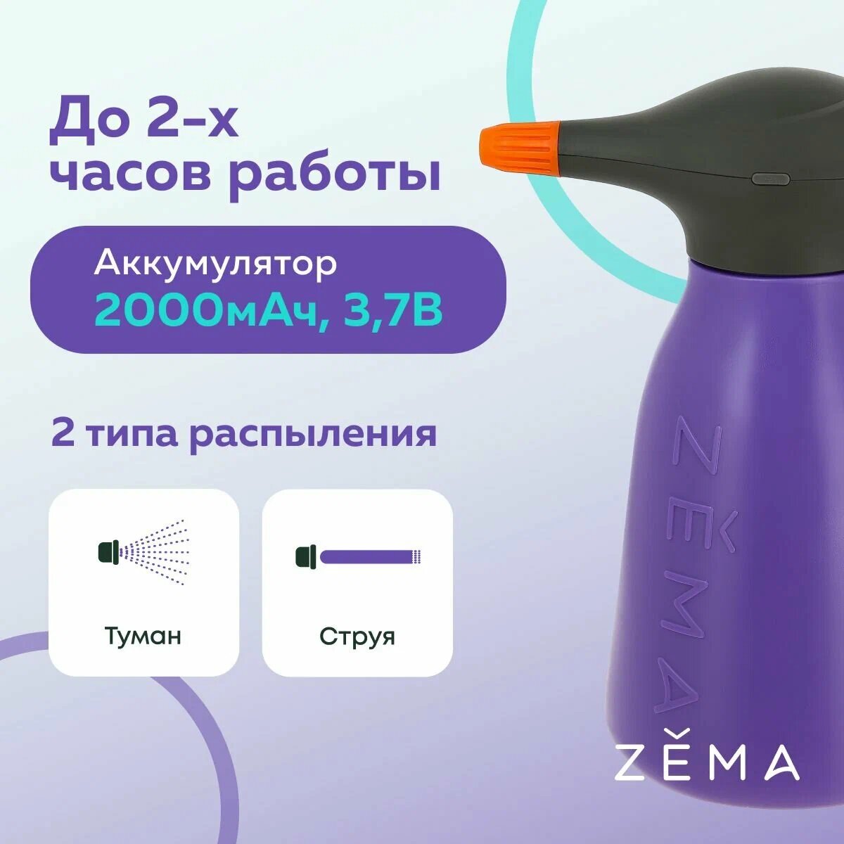 Опрыскиватель садовый работа от аккумулятора, Zema, 2 л, Li-ion, 2 А.ч, 3.7 В, пластик, Накаба, ZM2-L
