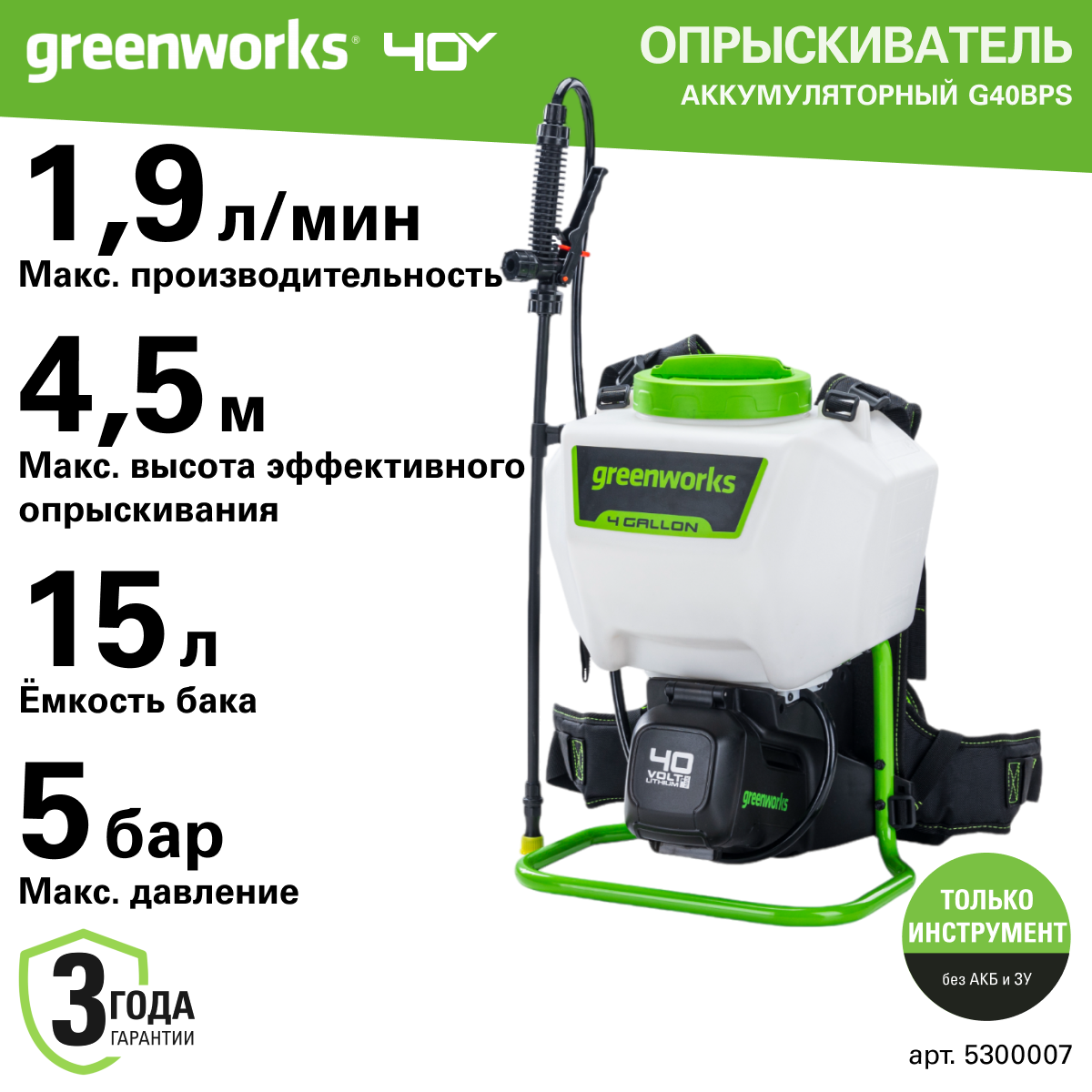 Опрыскиватель аккумуляторный Greenworks G40BPS, 40V, без АКБ и ЗУ (5300007)