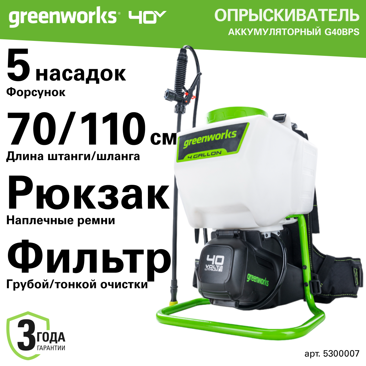 Опрыскиватель аккумуляторный Greenworks Арт. 5300007, 40V, без АКБ и ЗУ