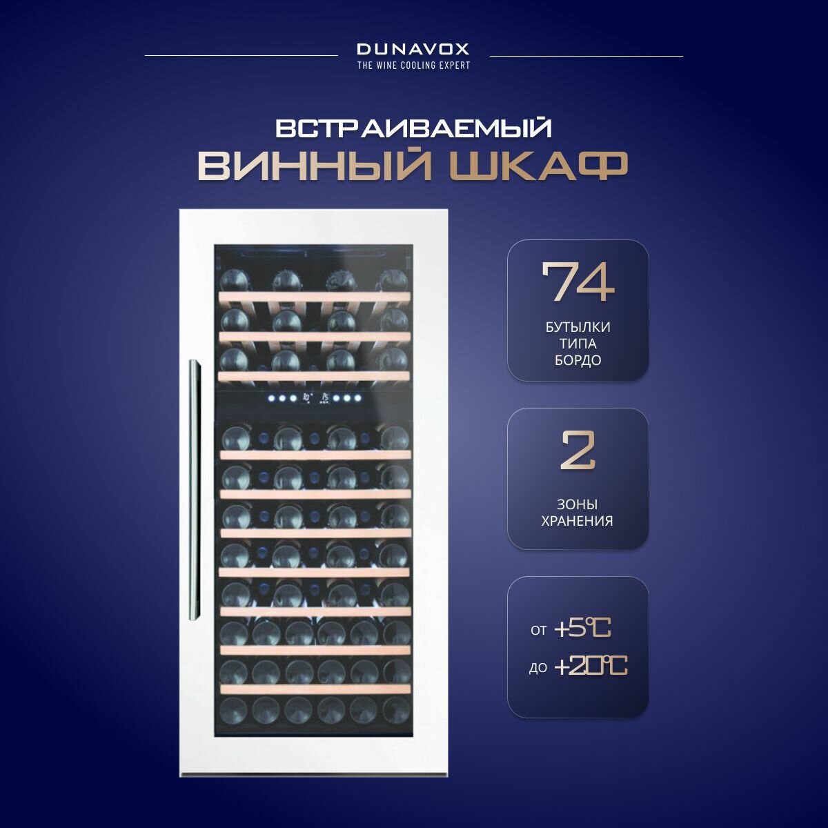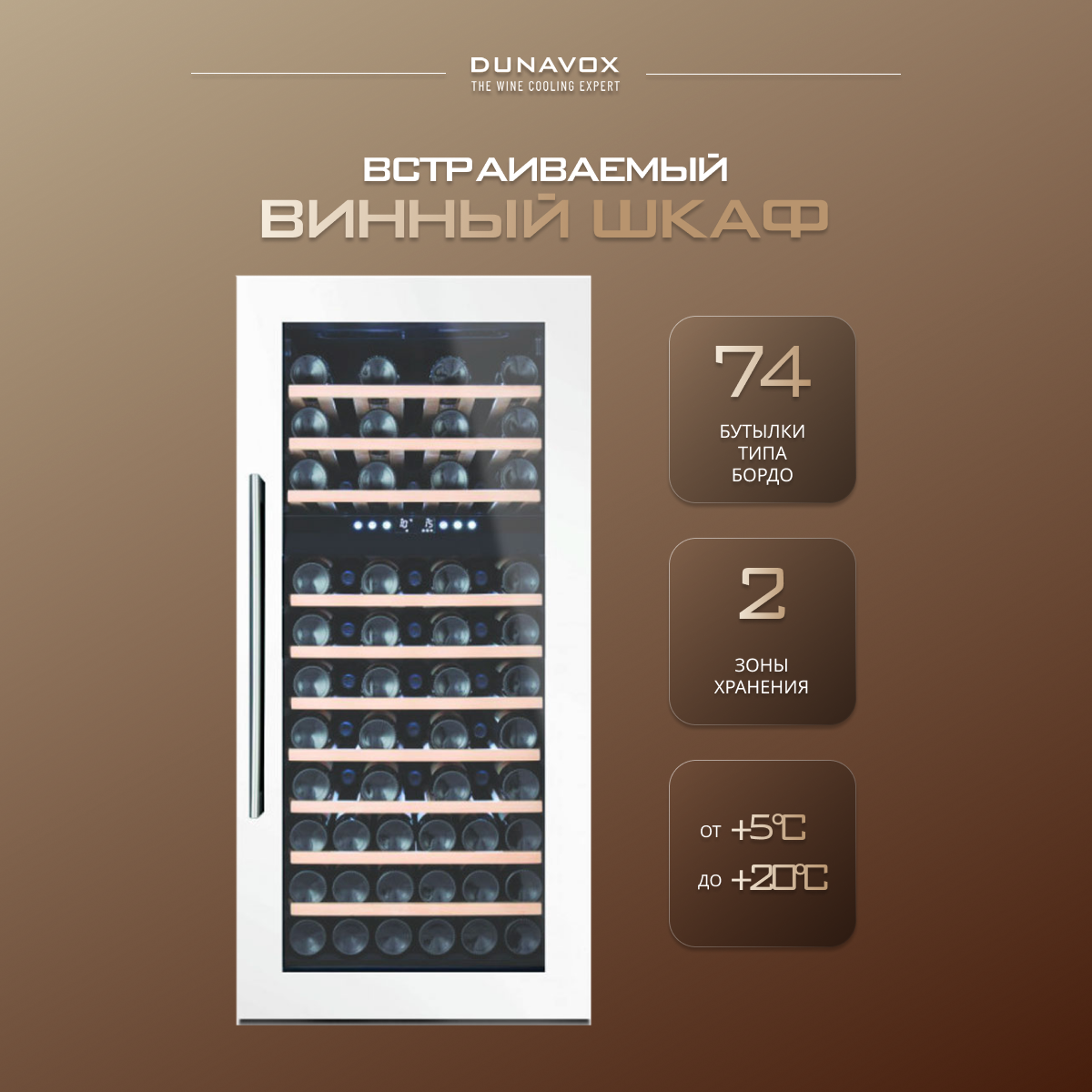 Встраиваемый винный шкаф на 74 бутылок Dunavox DX-74.230DW белый