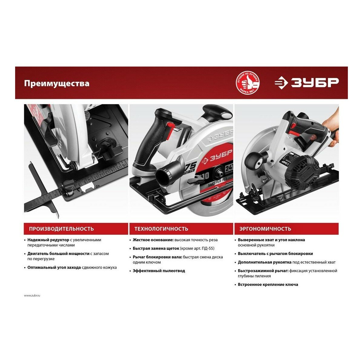 Дисковая циркулярная пила ЗУБР диск 210 мм, 2000 Вт ПД-75