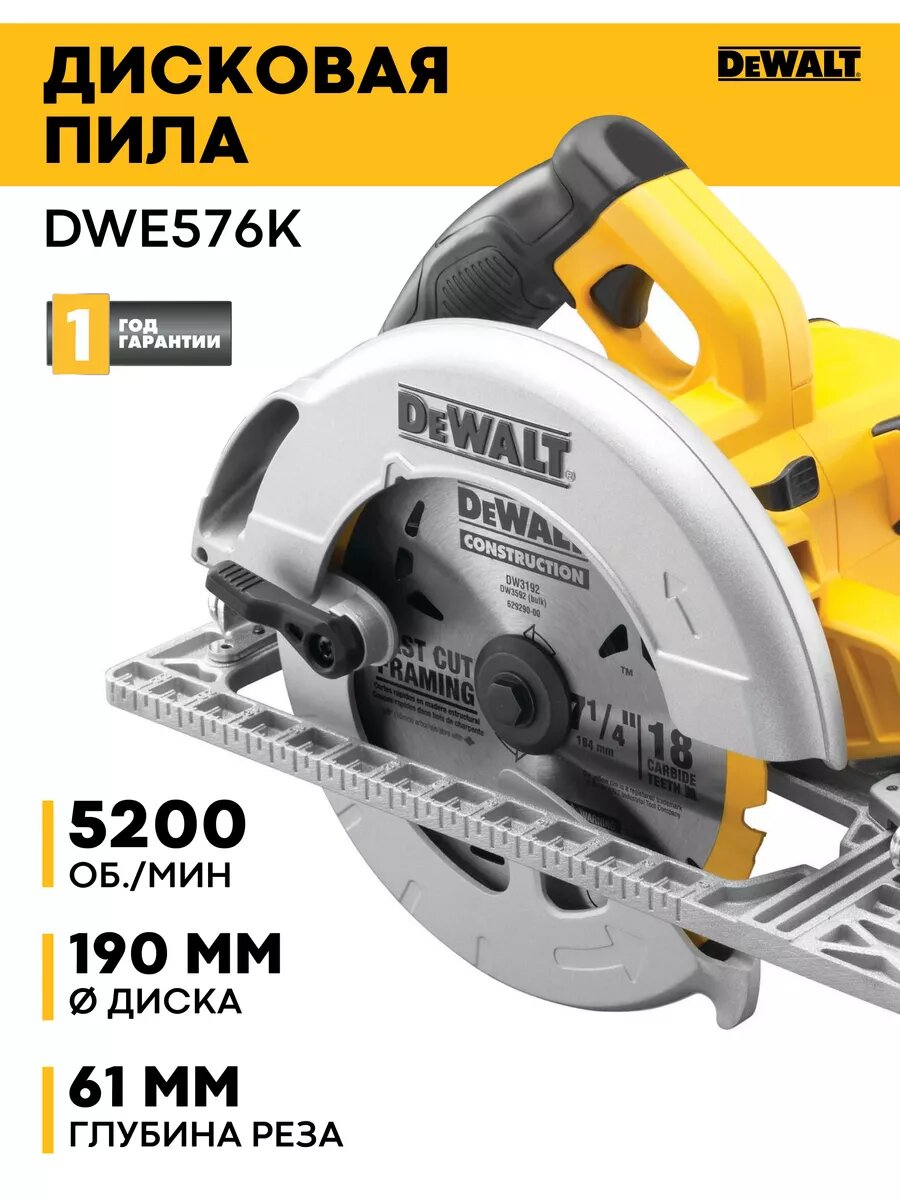 Пила дисковая сетевая Dewalt DWE576K 190/30мм, 1600Вт, 61мм