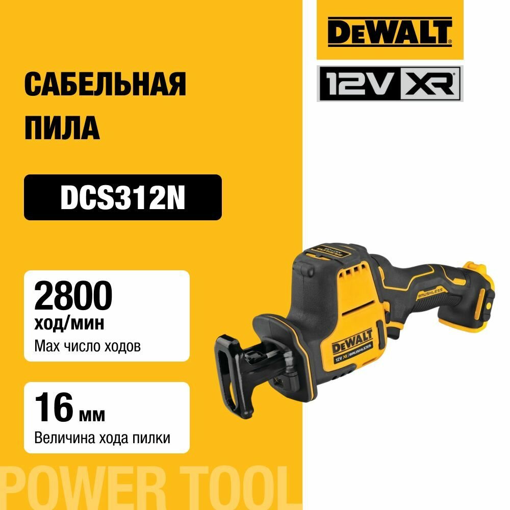 Купить Аккумуляторная сабельная пила DeWALT, 12 В, 2800 ход/мин, без АКБ и ЗУ, DCS312N
